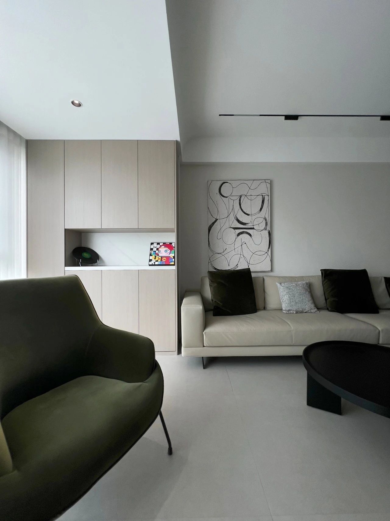 本案以“现代简约”为核心构筑整体空间,在简单空间的底色里,以不断提纯的视觉舒缓感,将色彩韵律、线条情绪、温柔质感带入满足屋主生活体感需要和美学情调。