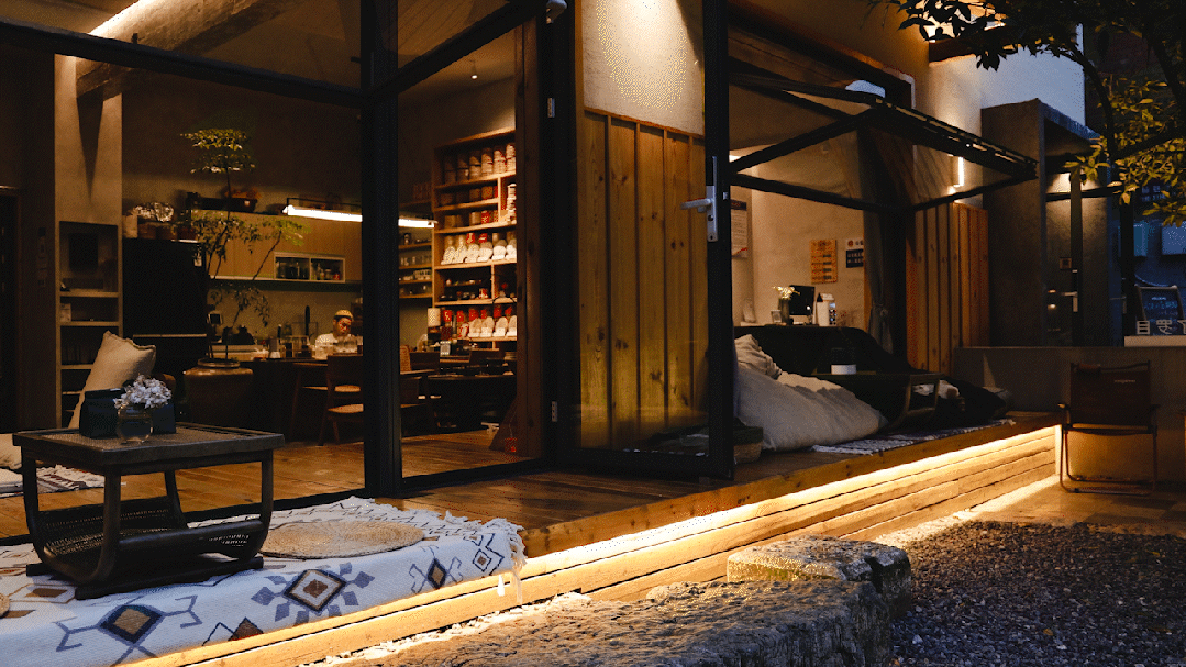 白昼将空间尽可能多地置于阳光之下,温养提供修复歇息的场域,仿佛没有喧嚣与匆忙,便是一片温柔恬静。天气晴好时,舒适放松地随心而坐,与友人促膝长谈,与五湖四海结交,翻半本没看完的书,感受阳光细细密密地洒在身上,静享时光。