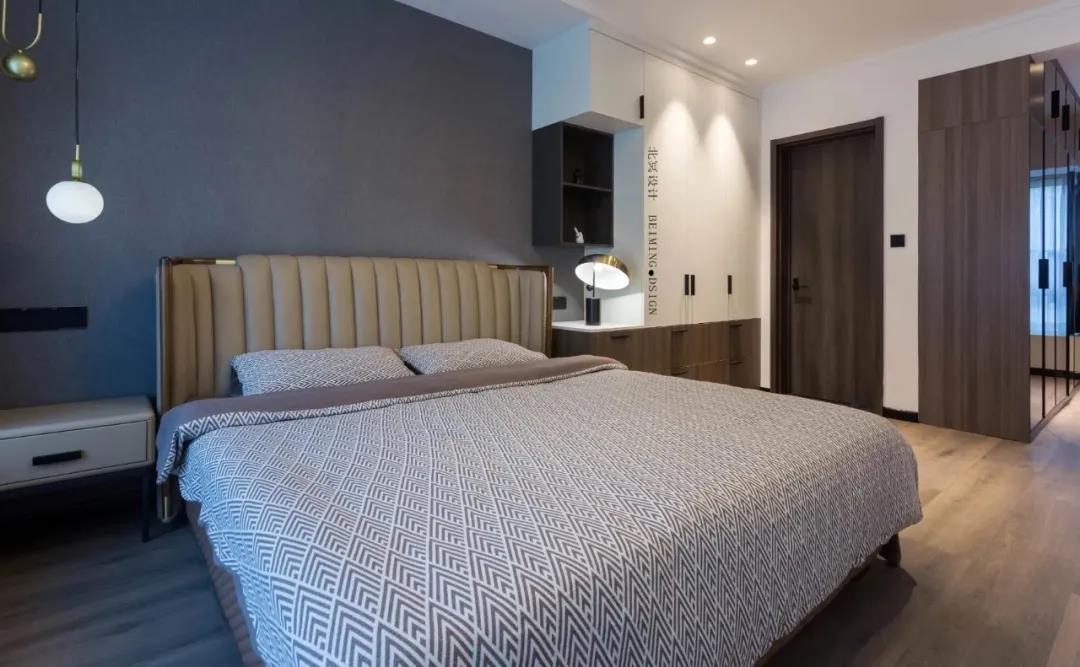 主卧选用灰色做主色调,刚好与整个空间的色彩形成呼应。