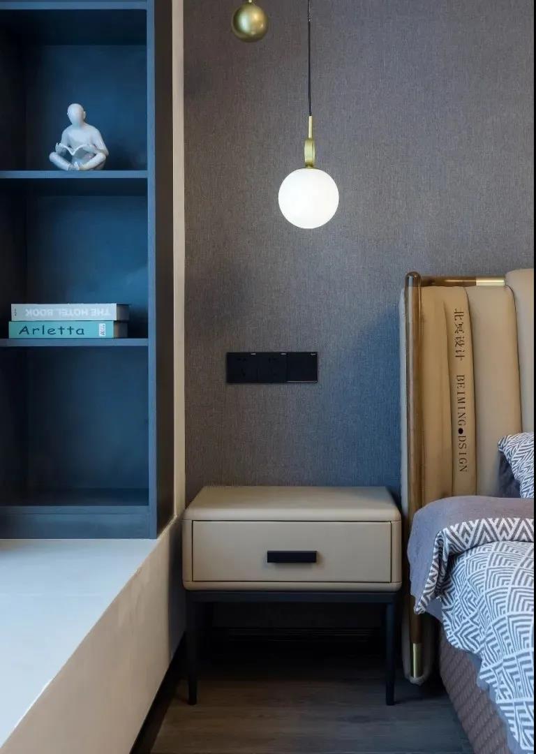 飘窗的墙面打造壁龛储物,多样的柜体提供更多的收纳空间。