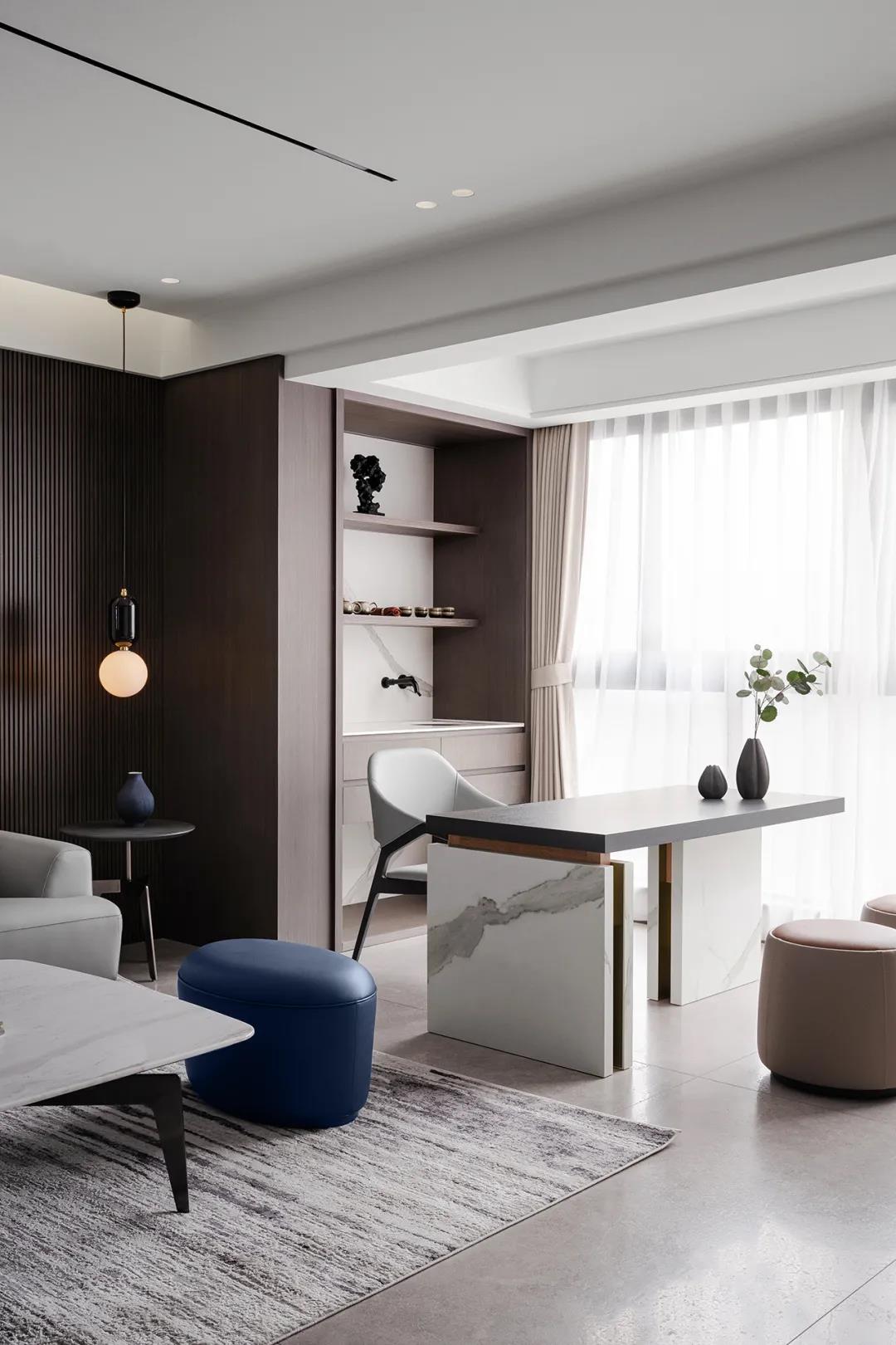 本次分享案例在整体空间的构建皆运用了简洁的设计语言,摒弃传统的奢华,以更加清新自然的简约生活方式,从另一个视角诠释了新一代年轻人对“家”及“奢”的认知——只有简单舒服,才能缓解都市生活的繁忙与压力,才是家给予的享受。