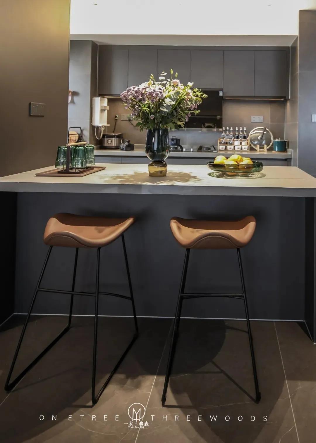 “欧文莱灰”在此处发挥着大背景的作用,内敛沉静,以宽广的胸怀拥抱着空间的所有,经典百搭。