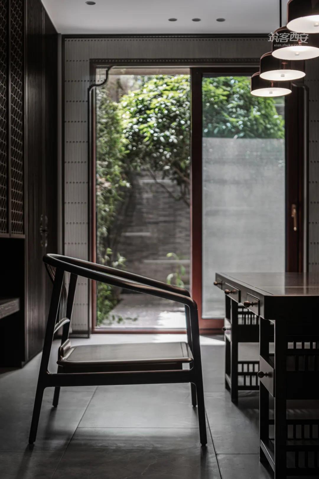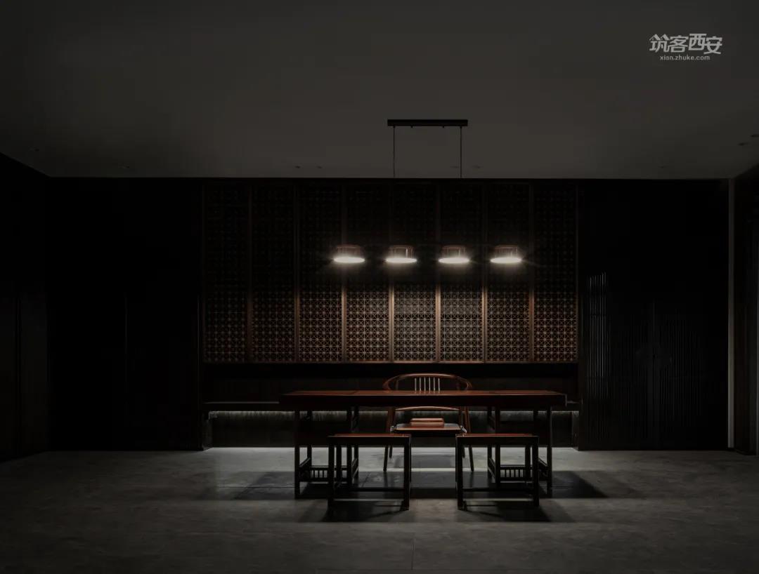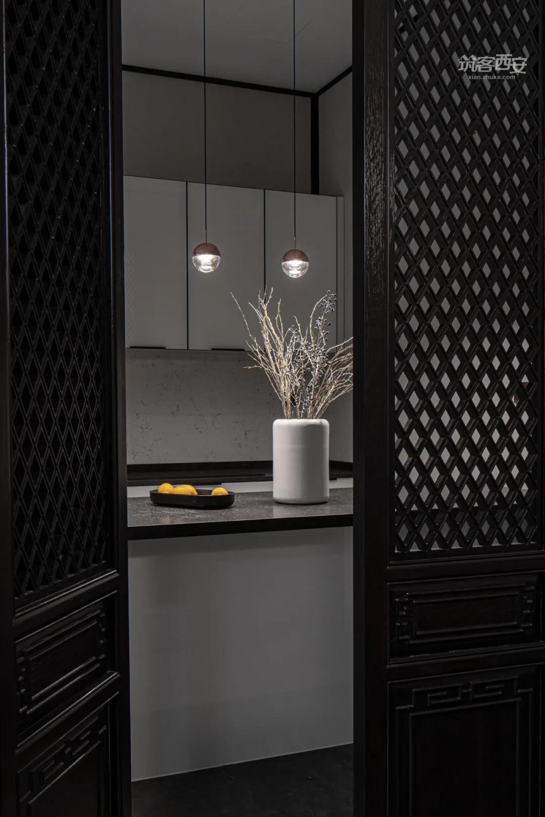 黑色格栅融合了现代审美和古典元素,成为了空间出彩的特色。