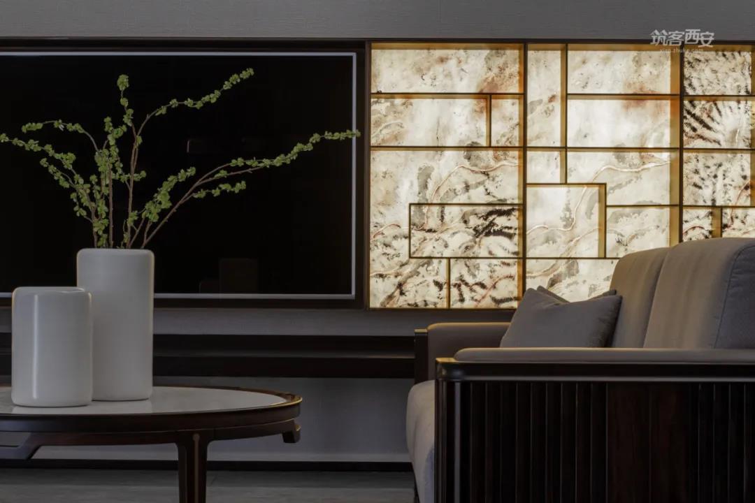 主要应用了“玄武石”系列、“卡拉拉”系列、“宙斯”系列、“北美橡木”系列等,打造典雅、温润、和谐的格调氛围,新中式的元素意境贯穿空间。