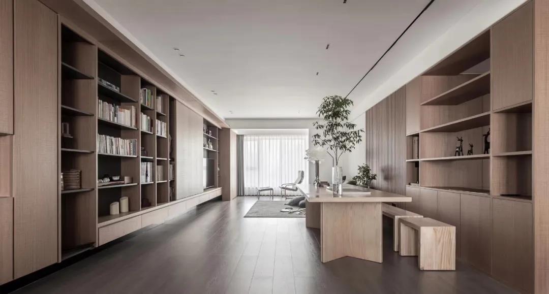 占据整面墙的定制柜体,满足业主收纳、置物的需求,同时木色增加了空间的层次感,高级简约的视觉感受,让每一天的生活充满仪式感。