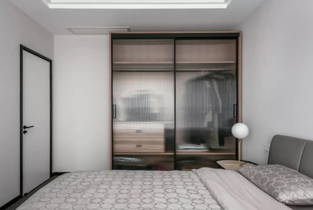 卧室沉稳的基调,搭配温润的木色,灰色床品独具质感,色调自然舒缓,满足安静、沉稳、舒适的诉求。