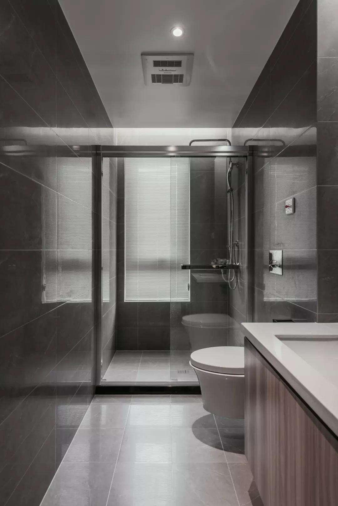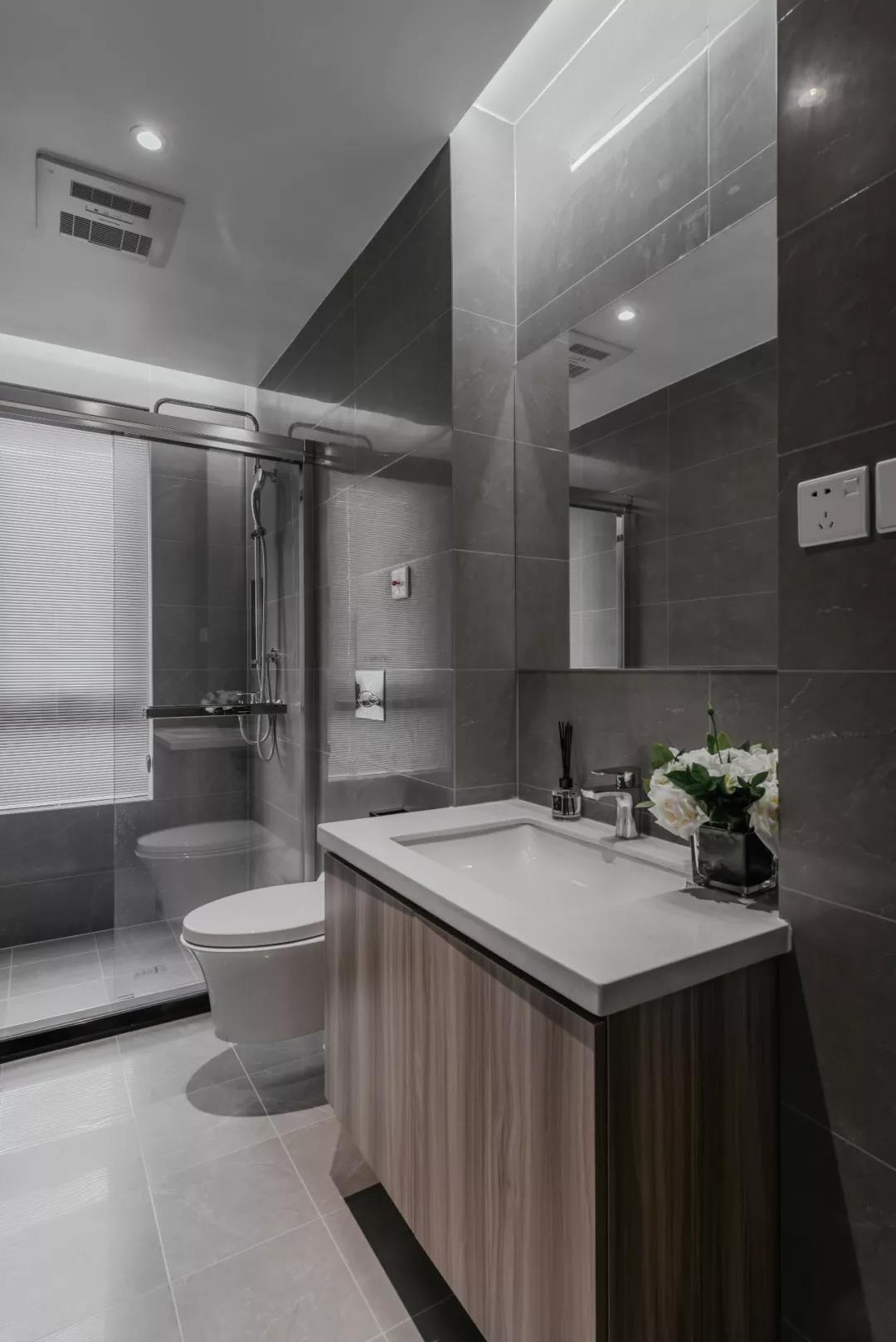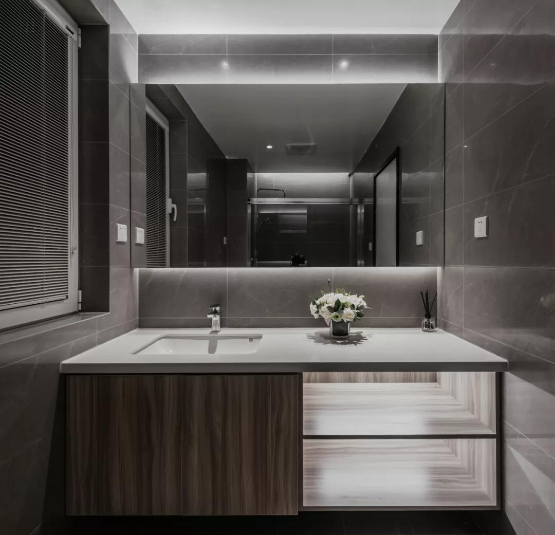 卫生间延续一贯的简洁质感,没有过多跳跃的色彩,用干净的手笔呈现清爽的气质。