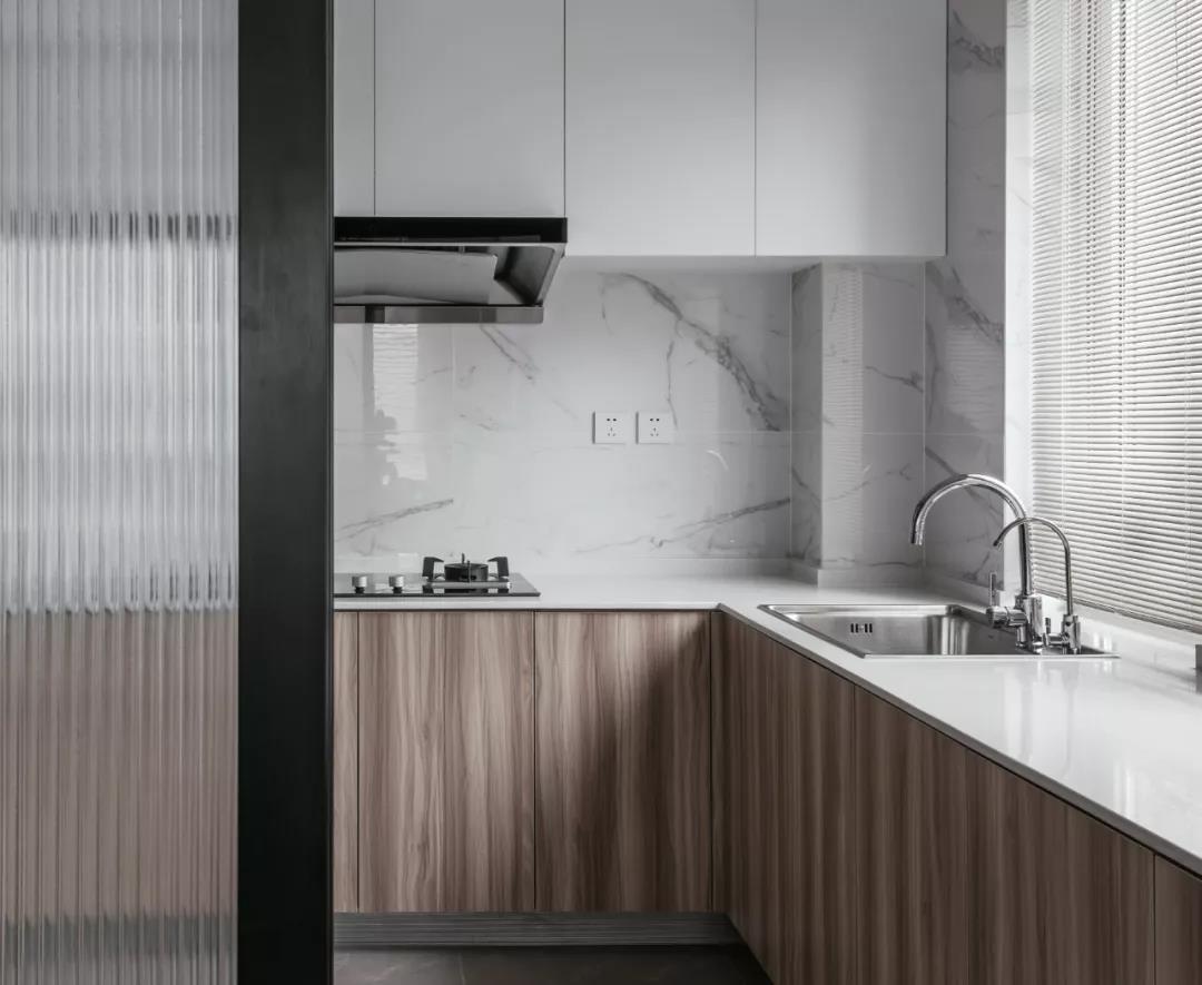 墙身上选用了“卡拉拉”系列,其纯美自然的气质更烘托出厨房的极致简洁。