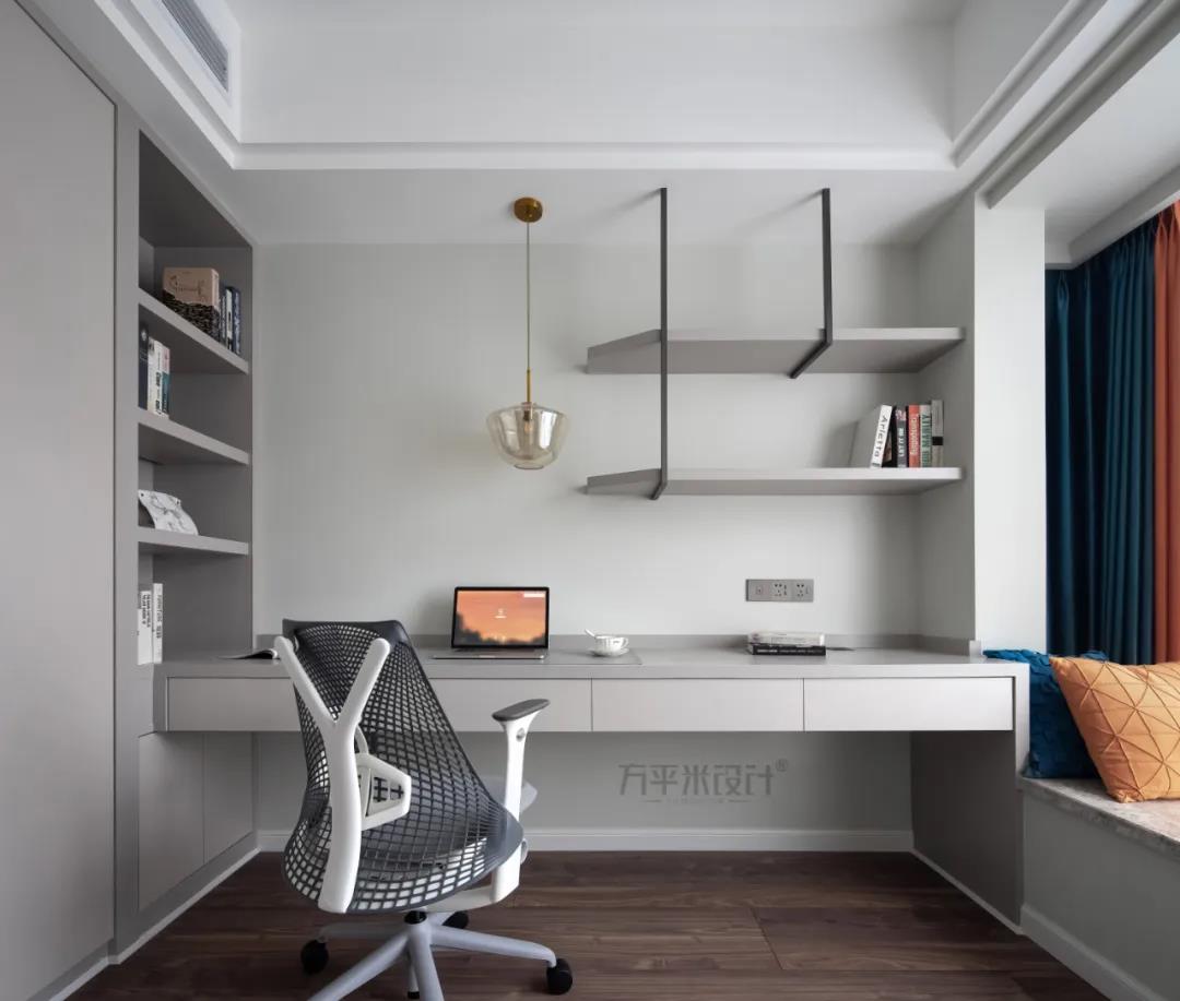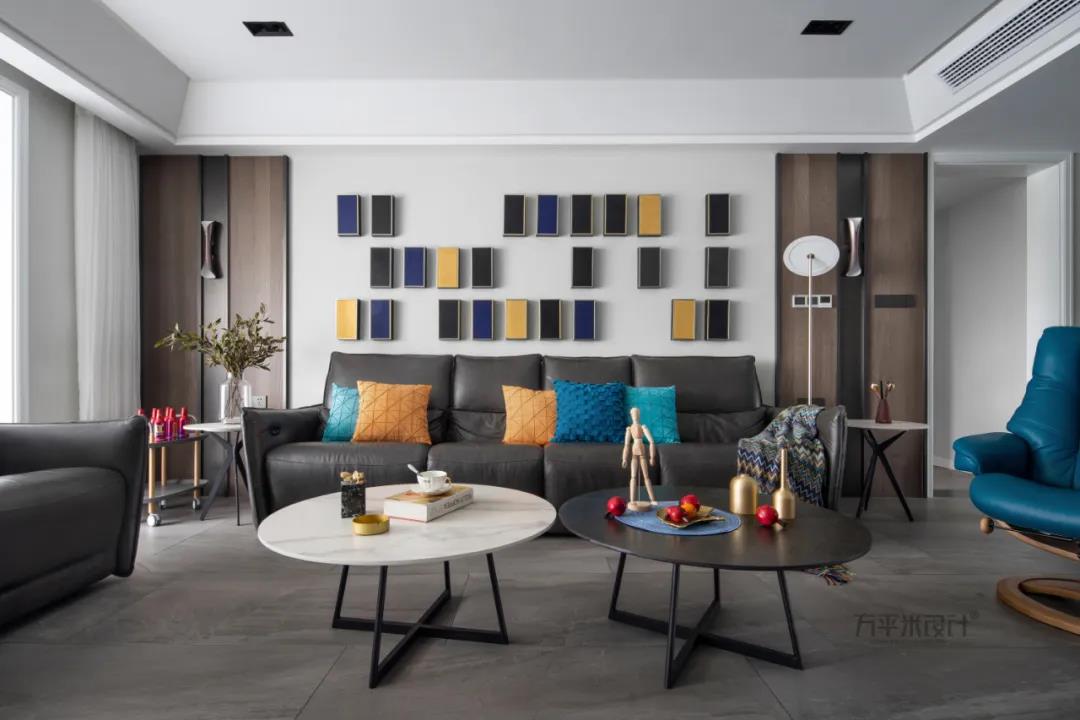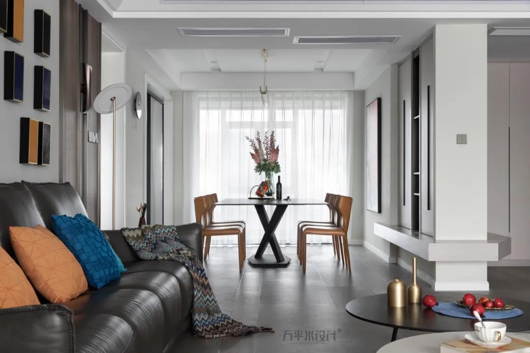 灰阶调铺陈空间基底,以撞色技巧活跃空间层次。