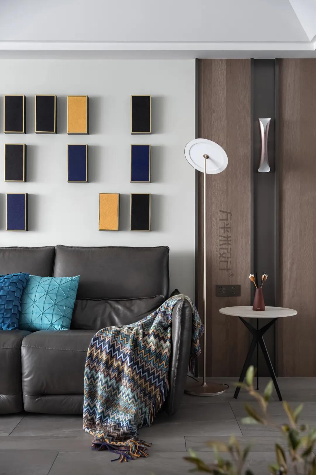 色块拼接组合的背景墙可对应客厅中任一物件颜色,形成由点及面的和谐美感,赋予空间明快舒适的氛围。