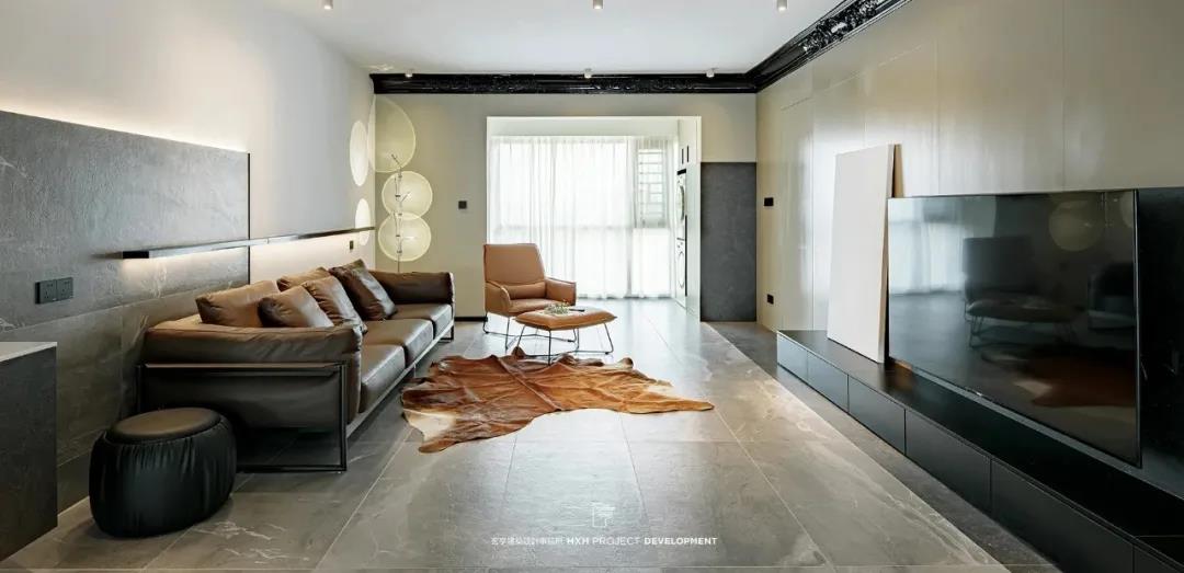 本案设计中运用了不同的材质做了的融合,运用差异性划分出区域的功能性,全屋隐形门,用不同高低、不同厚度的体块互相叠加,形成立体层次。