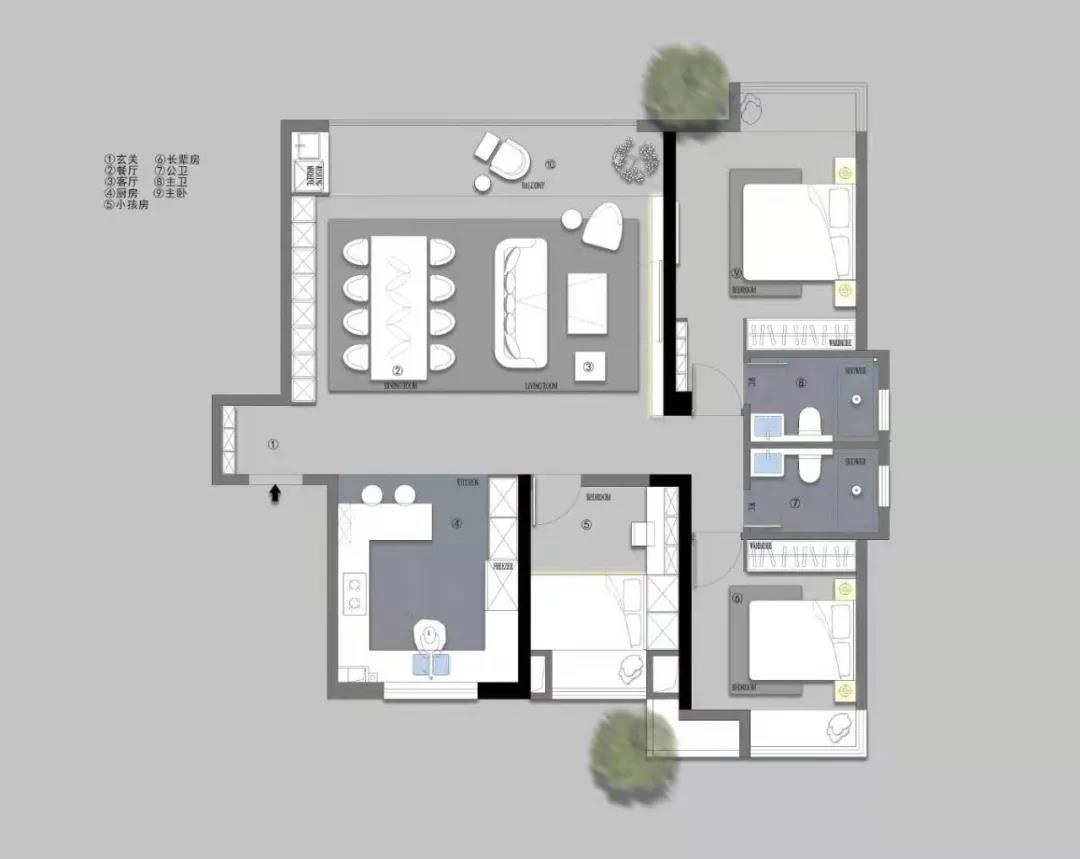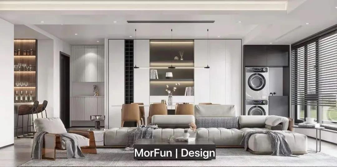 客餐厅空间通过灰白色系的调和,打造出高级的质感。