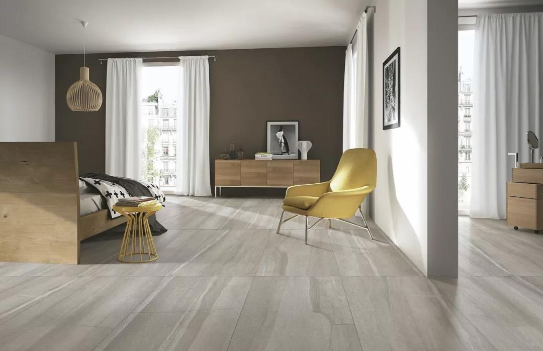 在整体素雅的空间里,地面大面积铺贴“冰凌石”系列,简单中透出自然舒适。作为家居的大背景,烘托出一种高级优雅的空间氛围感。