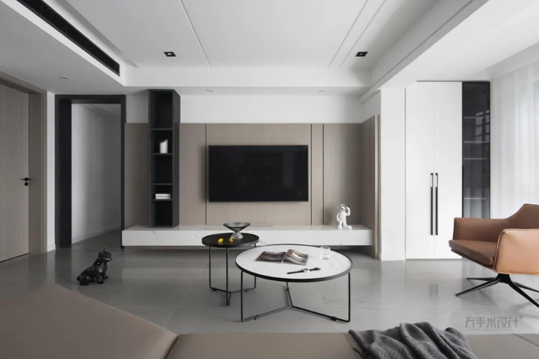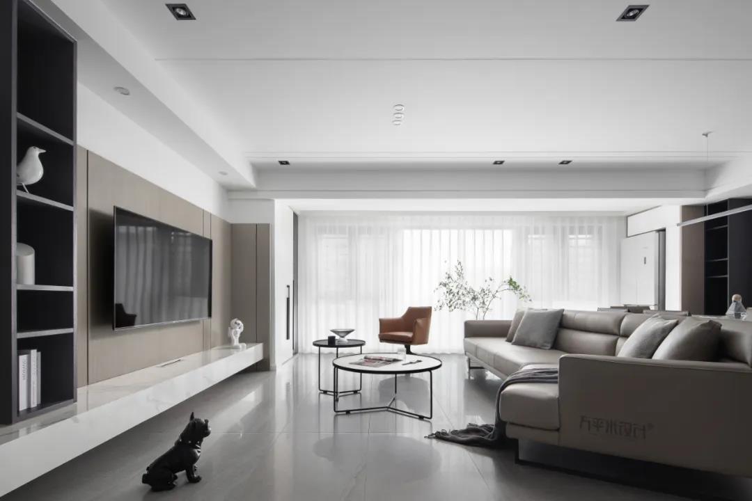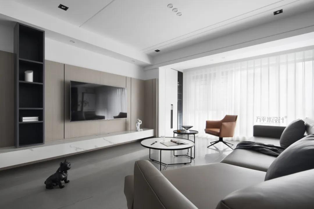 客厅整体以极简的硬装基础,在高级灰的空间氛围下,呈现一个充满简单优雅的气质空间,给人以惬意自然的氛围感。