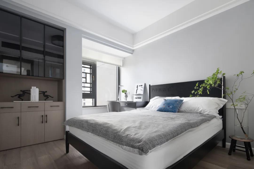 主卧室以白色、灰色、原木色为主调,延续了客餐厅的色系配比,让整个家的整体色彩融合度更高。
