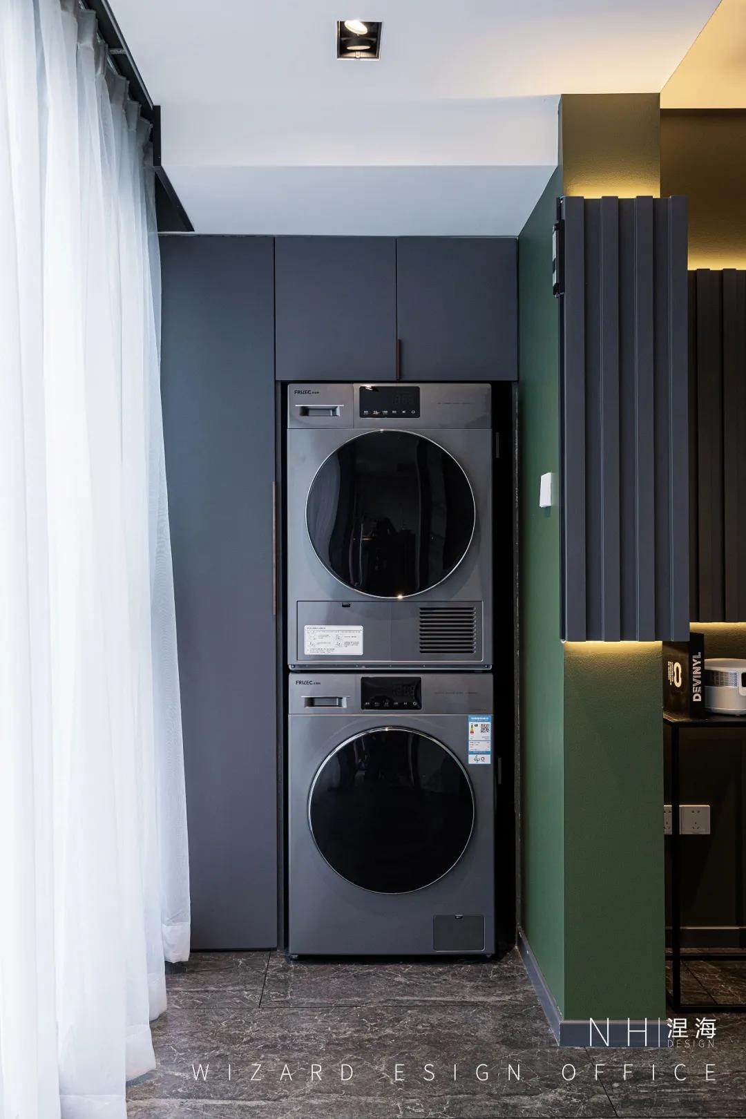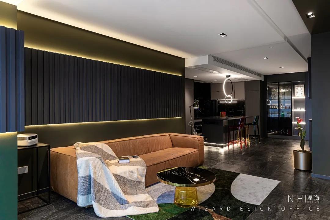墨绿的墙面与黑色木饰面碰撞,搭配局部的软装,让空间变得更加灵动和有质感。