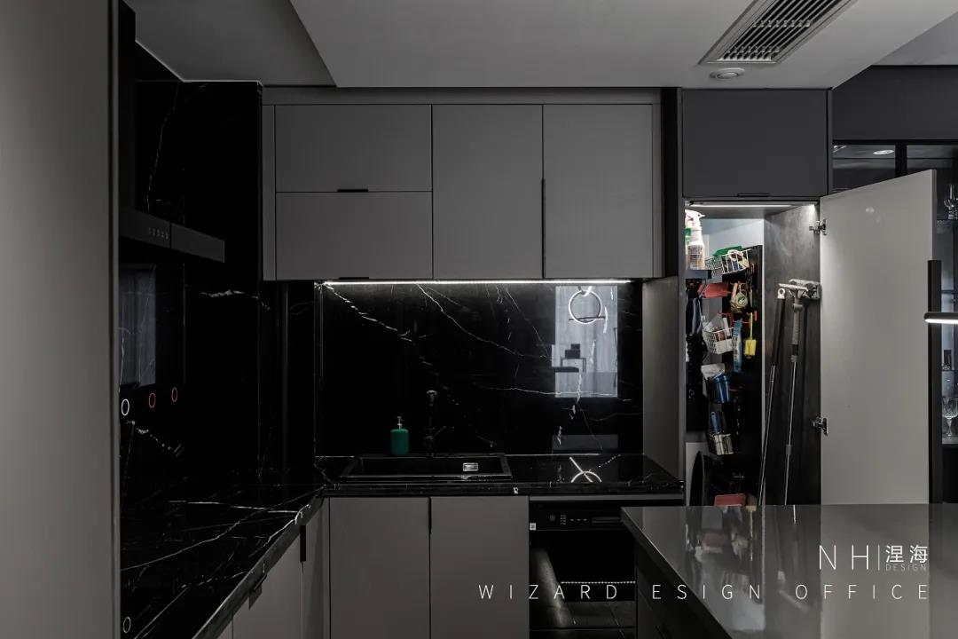 空间各个角落都设置着巧思,将收纳发挥得淋漓尽致,简约并非意味冰冷着拒人千里,静享生活之美的同时,透露着烟火气,有一种摩登中的温暖。
