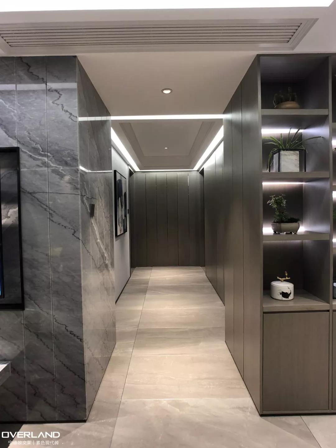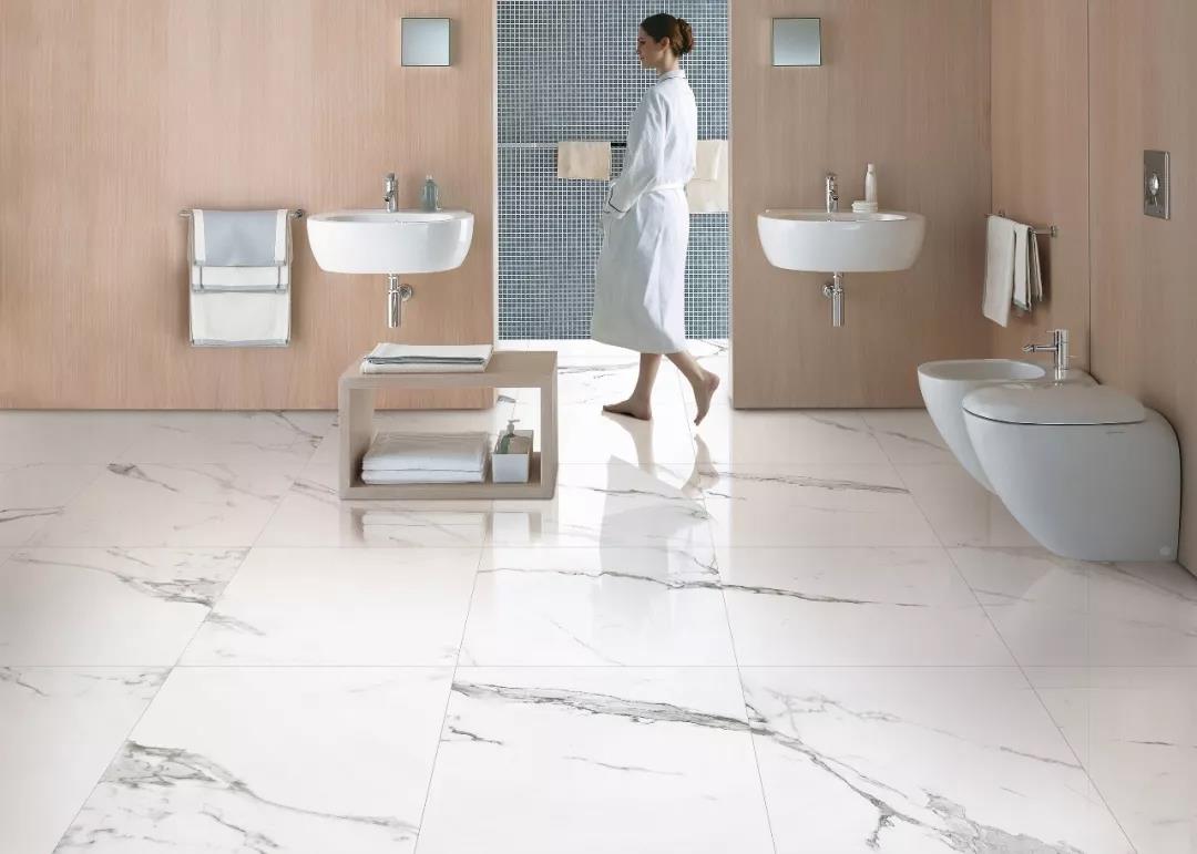 “宙斯”系列层次色泽深入浅出,纯粹、自然,以高级灰调奠定空间的基调;“卡拉拉”系列纯白底面上漂浮的灰纹,显得自然飘逸,应用到空间中有种自然柔和的浪漫感觉,洁白色调能将主人的品味衬托得更高贵优雅。