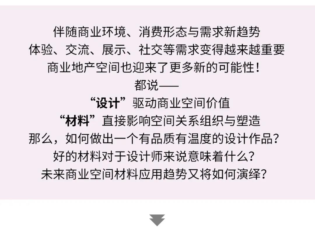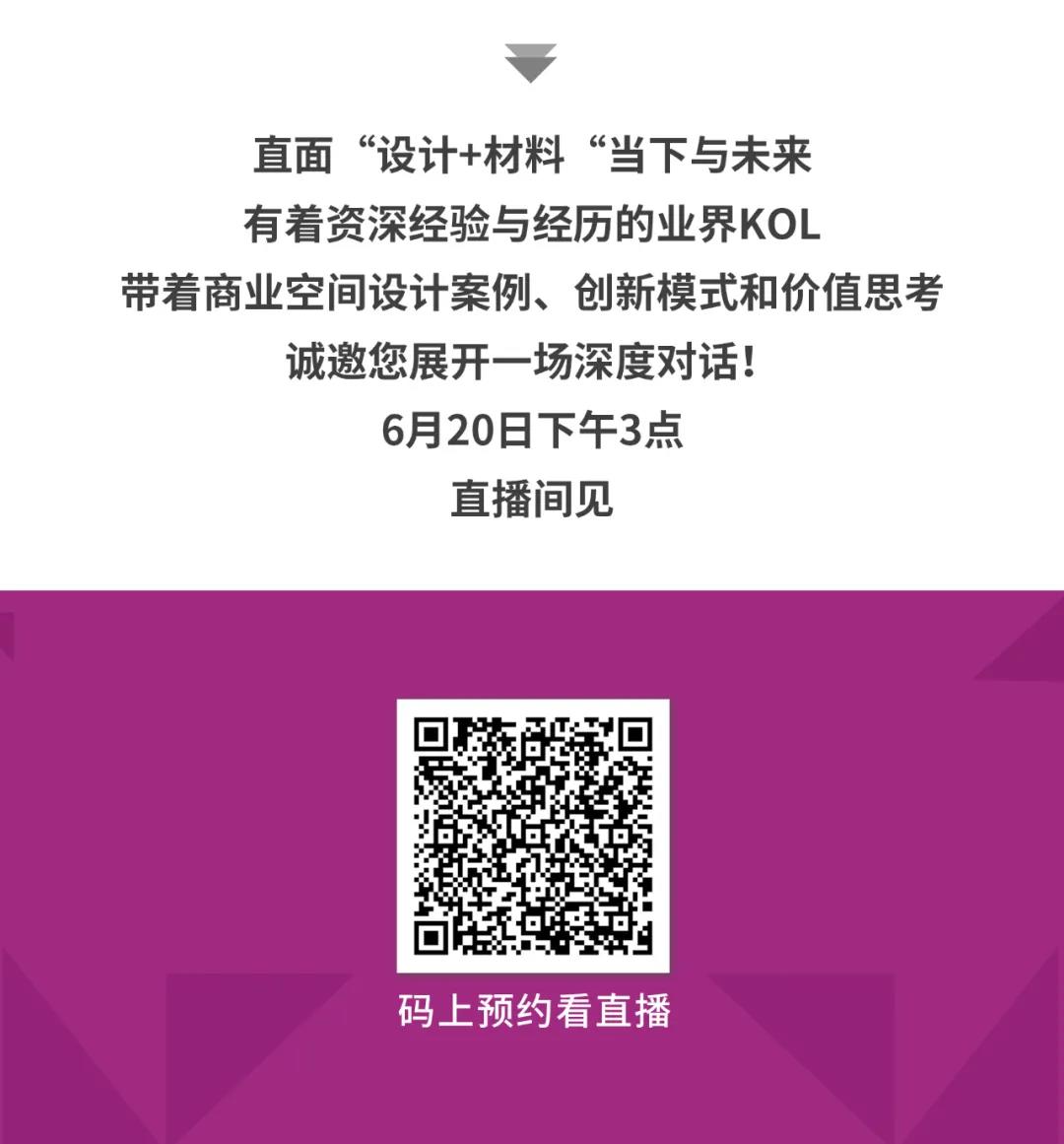 作家创作故事用的是文字语言, 空间设计师表达故事则用的是设计语言, 造型、构成、材质、色彩、比例等等 这些都是设计师最为熟悉的设计语言。 材质语言常常是设计传达的关键, 材质与设计的关系首先是材质与人的关系, 所以材质与设计师本就是相互成就的过程。 在接触材质的这个过程中, 绝大部分设计师都有长期“碰瓷”经历, 因为瓷砖在很多空间功能装饰构成中占有重要比例。 高品质感的瓷砖会让整体空间因为细节而生动。 来到2020年, “设计+材料”有哪些新玩法? 6月20日下午3点全网直播为您解答 ↓↓↓↓↓↓ 6月20日下午3点全网直播!