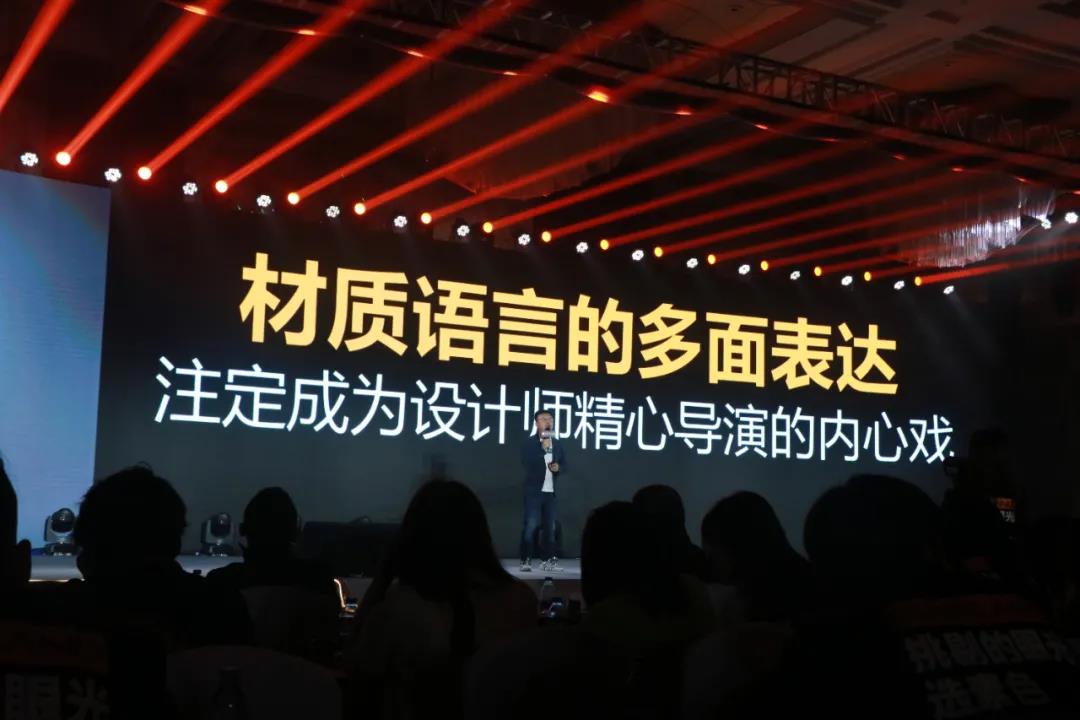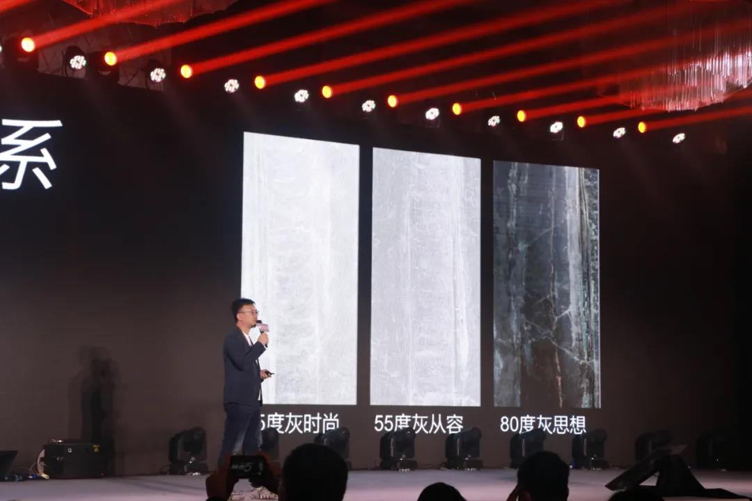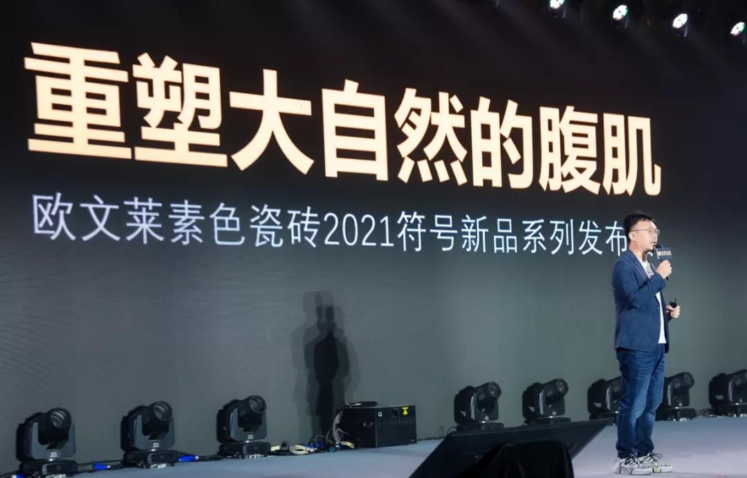 在新品发布会上,梁雪青以《重塑大自然的腹肌》作为欧文莱素色瓷砖2021年符号新品发布的演讲主题。