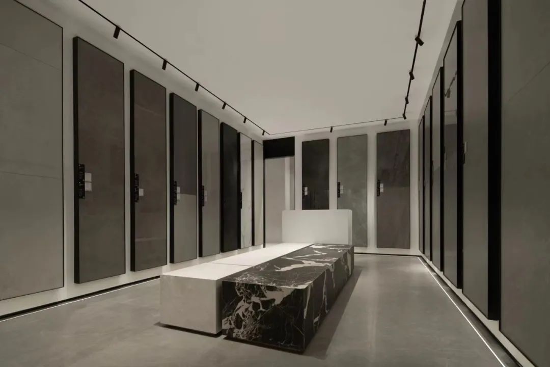 穿过走廊,“令人瞬间安静的高级灰”营造人与材质对话的氛围,不同出口解锁不同的体验环境。