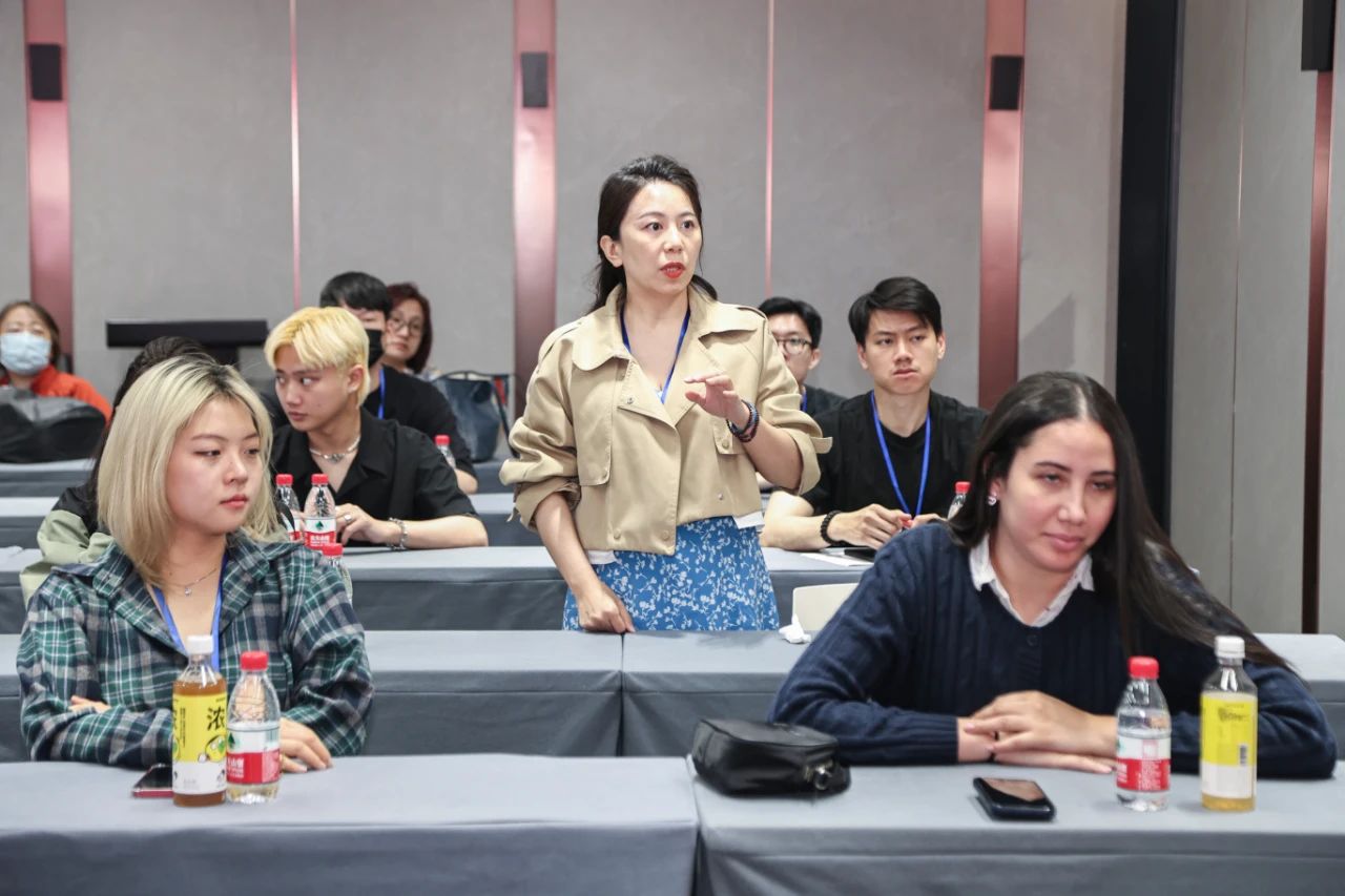 △ 欧文莱国际营销中心副总经理何祥杰针对学生提问,作国际战略方向的交流讲解