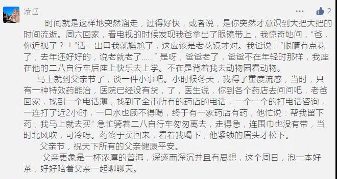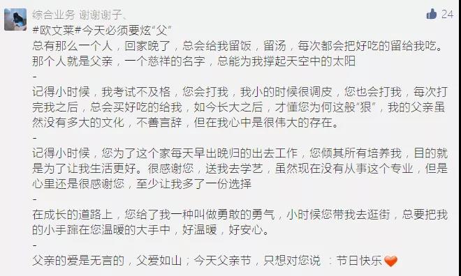 端午节没能团圆,不过还好有网络联系,彼此之间能够通过视频电话,互相送去温暖。昨天和他通话听说最近工作挺累的,又是做社区核酸,又是接种疫苗,听的我很心疼,端午节我和妈妈提前包了他最爱的粽子用顺丰给他寄了一些过去。父亲节又快到了,也不知送他什么礼物好,只希望他能平平安安顺利完成工作就好。最后借欧文莱这个平台祝愿所有父亲节日快乐,生活高高兴兴的,出入平平安安的,也和辛苦付出的老爸说:辛苦了,我和妈妈爱你,等你早日平安归来。