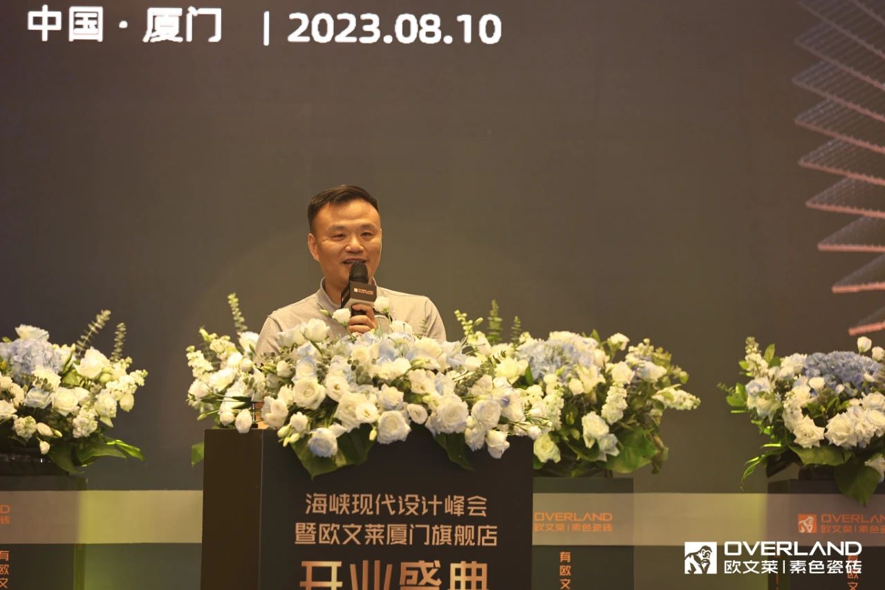 活动伊始,广东欧文莱陶瓷有限公司执行总裁汪加武对欧文莱厦门旗舰店的盛大开业表示诚挚的祝贺,对其未来发展致以支持与鼓励。他在阐述门店新基建意义的同时,表示:“立足世界之林,欧文莱致力构建中国与国际设计的桥梁。希望能为更多充满创意和朝气的设计师提供交流和选材的平台,为海峡设计圈带来城市空间发展的多种可能性,带来人与设计空间的更多思考。”
