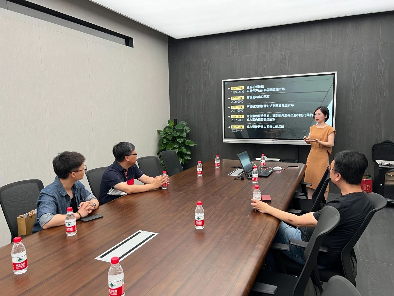 △ 北京外国语大学研究生代表团自4月24日起进行为期一周的调研专访,欧文莱品牌营销中心总经理梁雪青作进一步的分享交流。