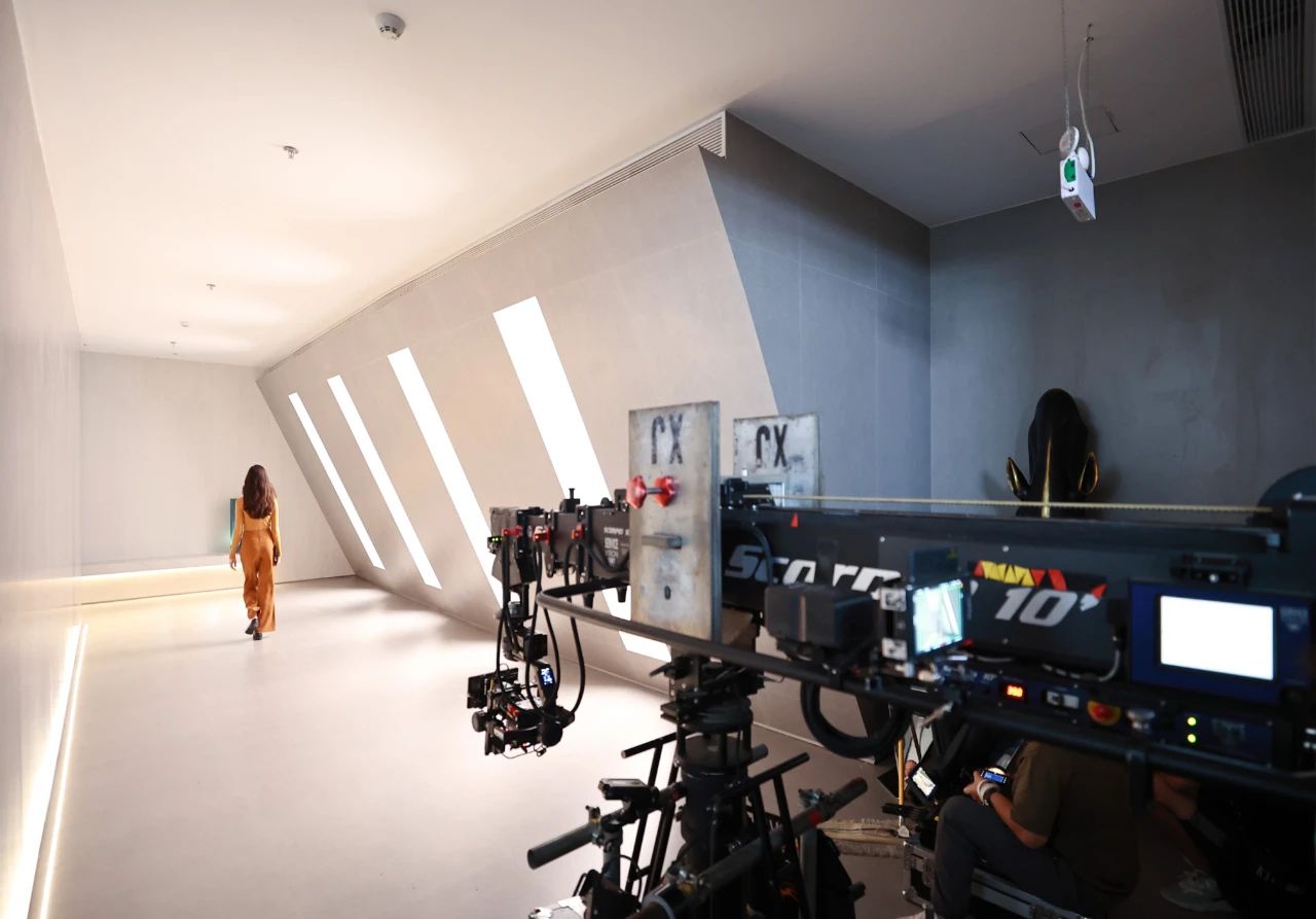 不约而同,《外》剧在欧文莱三水总部展厅拍摄的同一时间,另一剧组一早便抵达欧文莱素色美学馆搭景、准备,开展时尚宣传大片的拍摄工作。