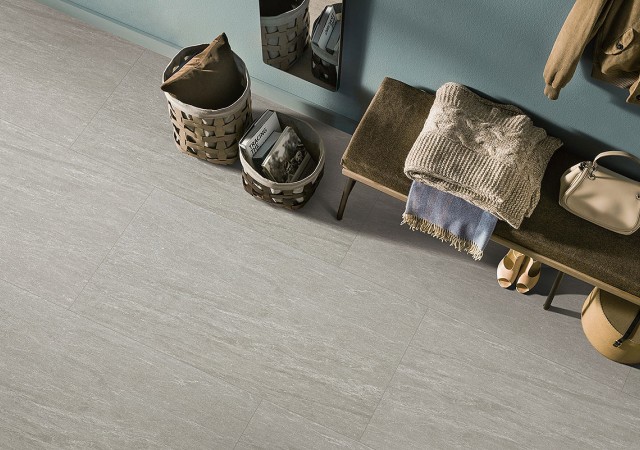 该系列采用“干粒柔抛技术”呈现砖面精细立体肌理,不仅具有砂岩的凹凸触感,且更显质感。砖面带有细微的摩擦感,涩而不粗糙,轻轻滑过砖面,可感受到来自不同局部的触觉变化。防滑度达到欧洲标准R9级,防滑性能较好,可用于客厅、厨房、浴室等家庭的各个空间。