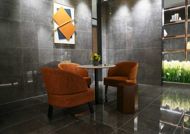 欧文莱采用“亮面精抛技术”,打造“蒙特里安”瓷砖表面平整光洁的镜面效果,触感细腻柔滑,令人爱不释手。防滑度达到欧洲标准R9级,防滑性能较好,可用于客厅、厨房、浴室等家庭各个空间。。