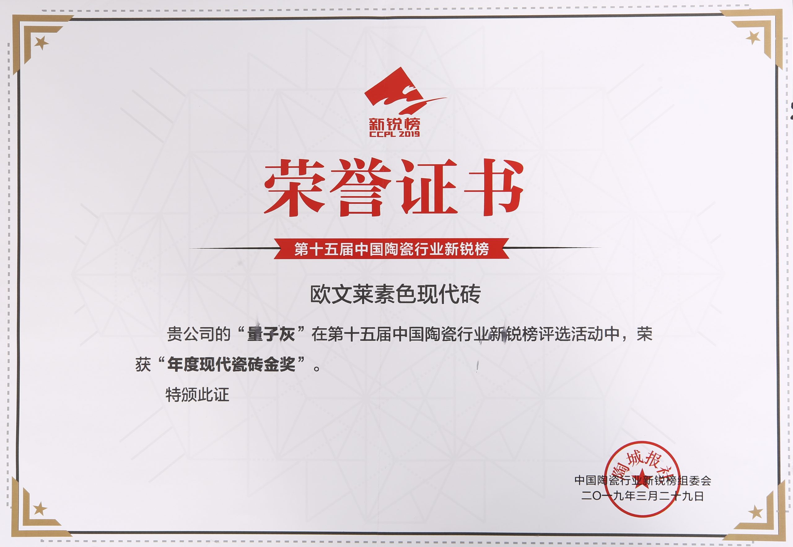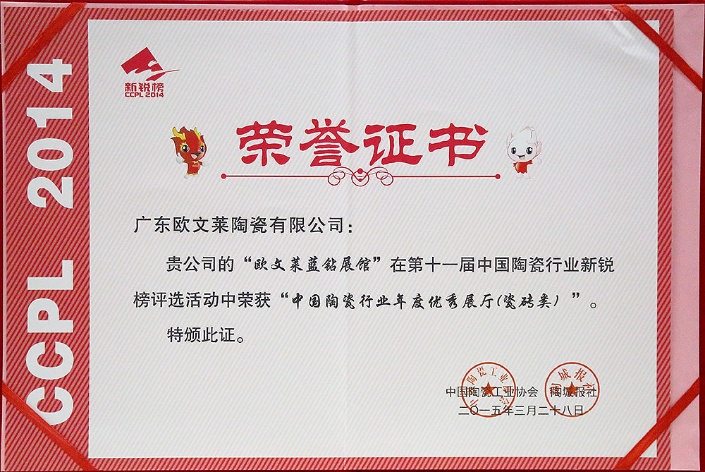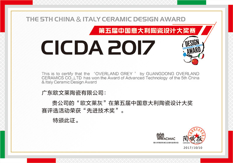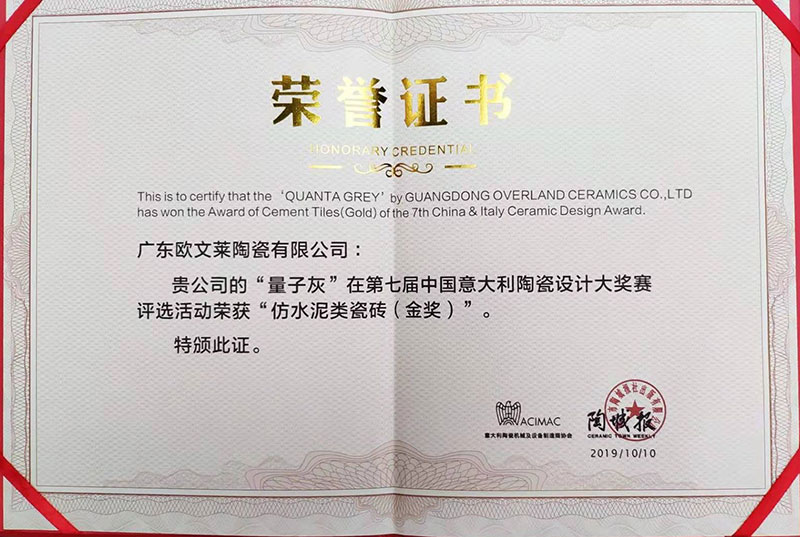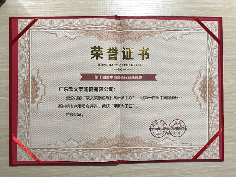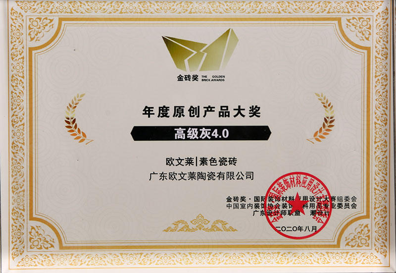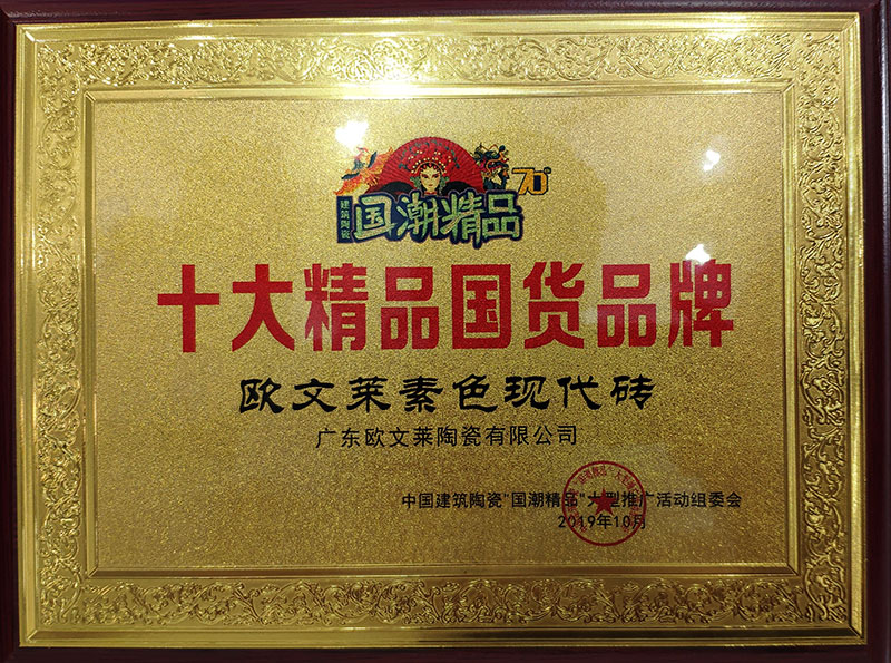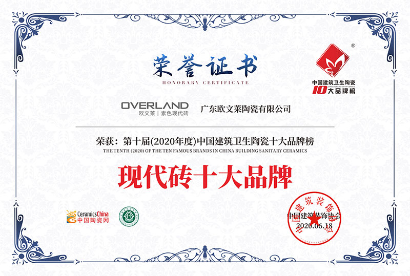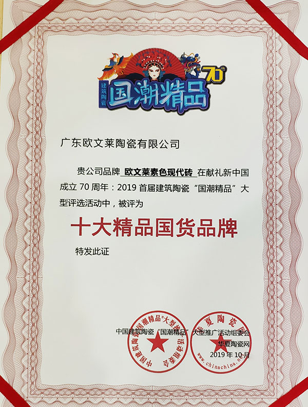欧文莱作为中国瓷砖品牌,坚守原创设计,坚持产品持续创新,持续推动民族品牌的国际化进程。2018年以来,欧文莱是代表中国参加意大利博洛尼亚展CERSAIE的素色瓷砖品牌;2020年,欧文莱成为入选央视《崛起中国》栏目的高端瓷砖品牌,代表中国创造先进水平与特邀主持人水均益高端对话。