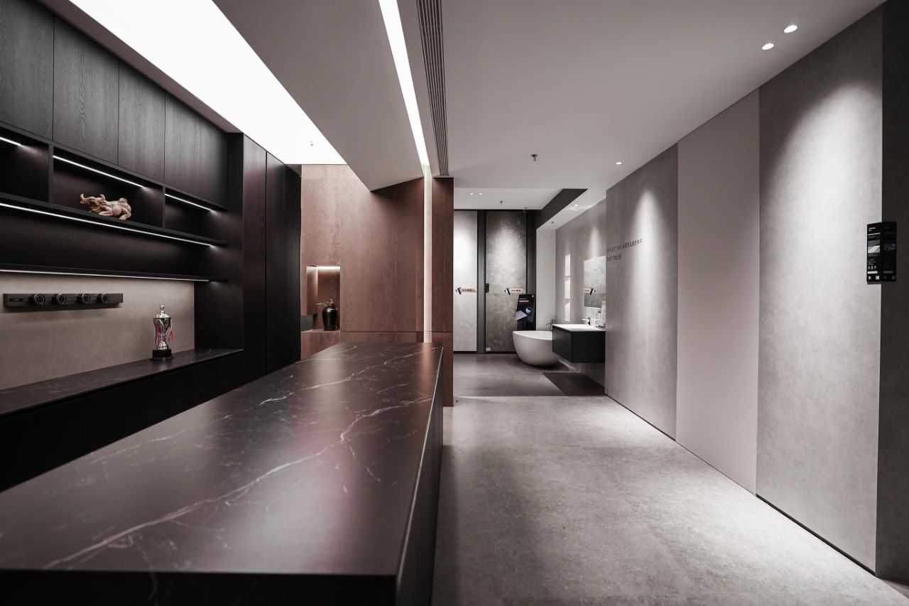 欧文莱材质产品应用至不同功能区域的表现形式各有差异,如同一曲交响乐的演奏,通过视觉、触感、想象的起伏,把人带到不同的情绪氛围里,体验感逐层递进。