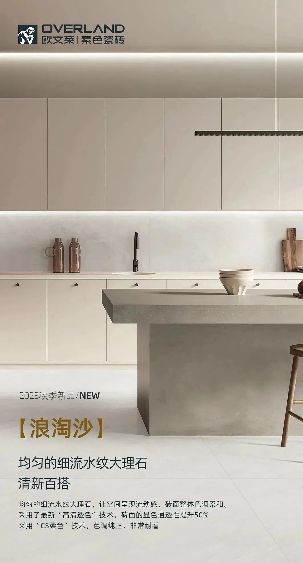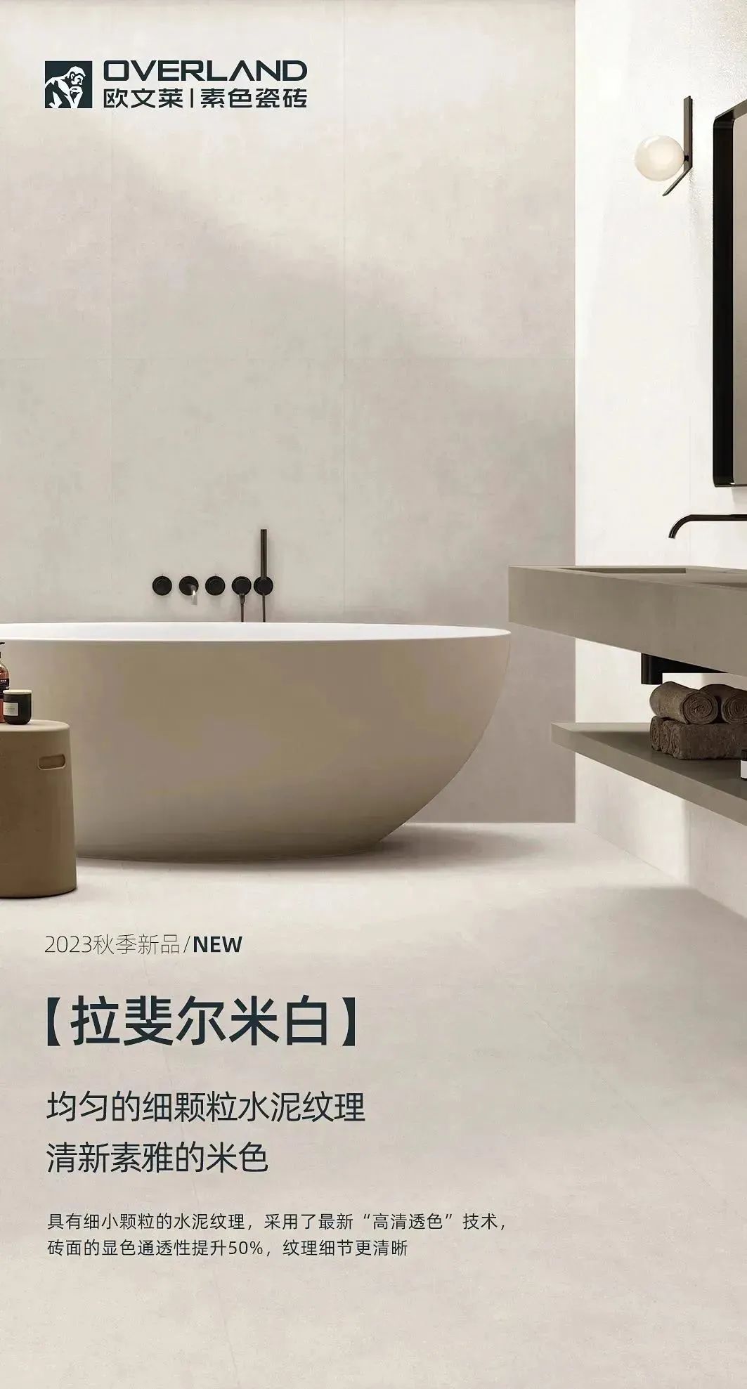 “拉斐尔米白”系列撷取水泥材质自然恣意的风貌,