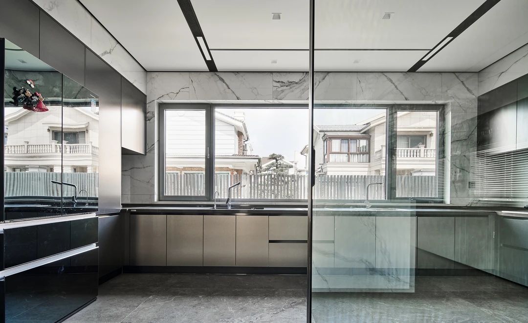 玻璃之隔,联系的是不同功能区,同时也无碍家人间的互动性。