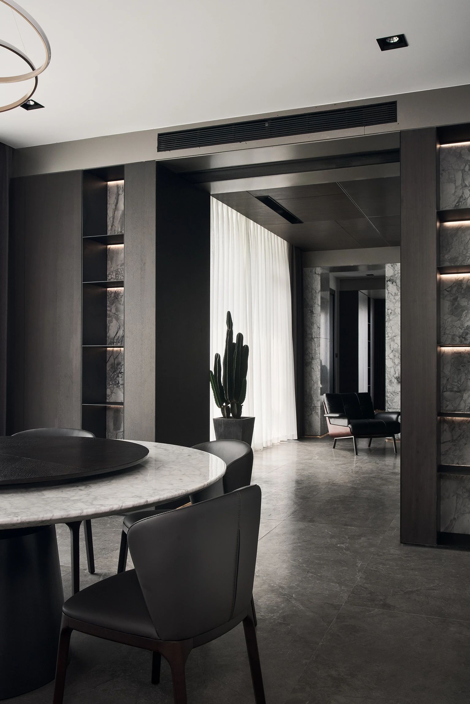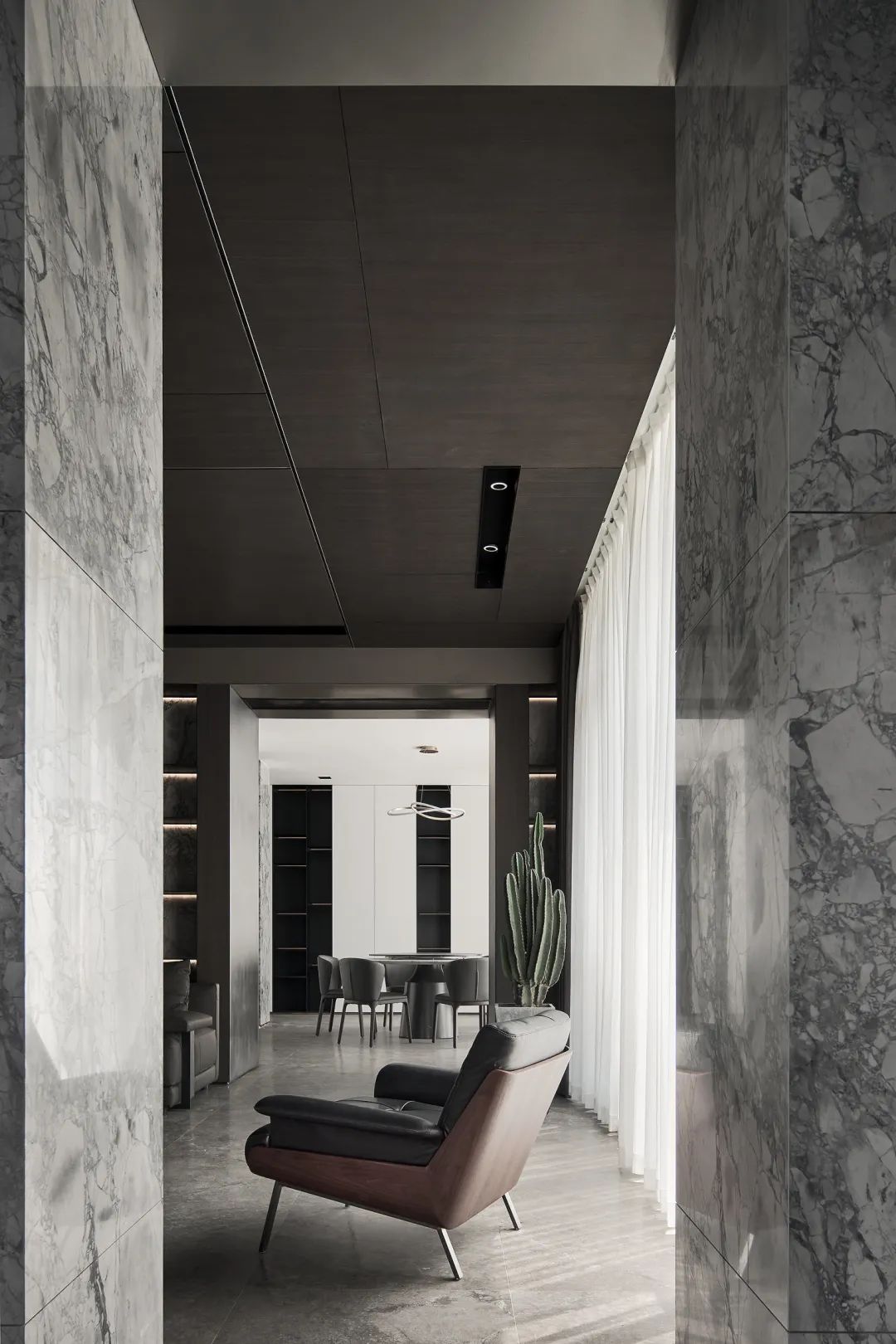 黑白灰素色,是随着时间沉淀下来的恰到好处的温柔和宁静。这套680㎡的私宅,用稳重深层的雅致风格,兼具感性和理性的叙述表达,将空间的气质有条不紊地延展开来。