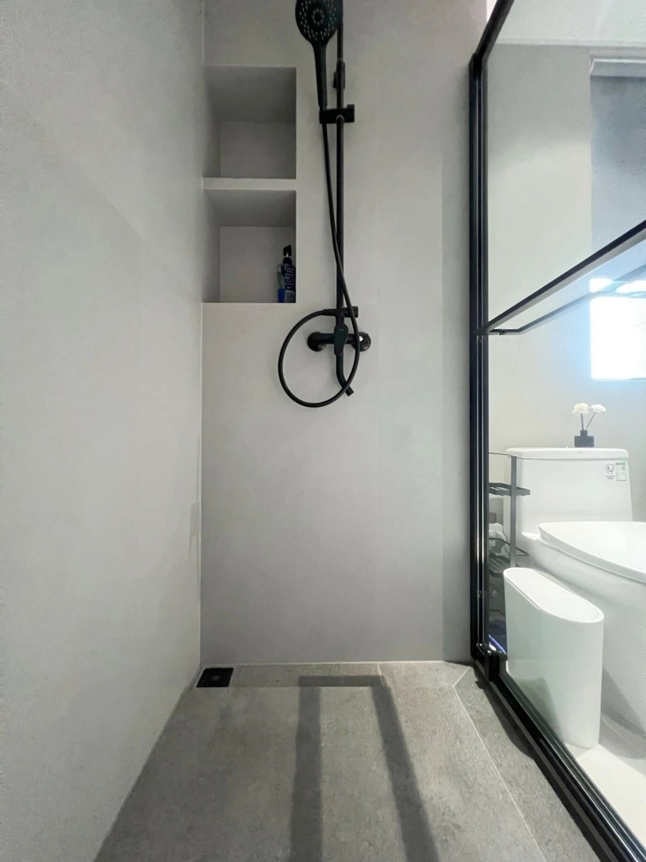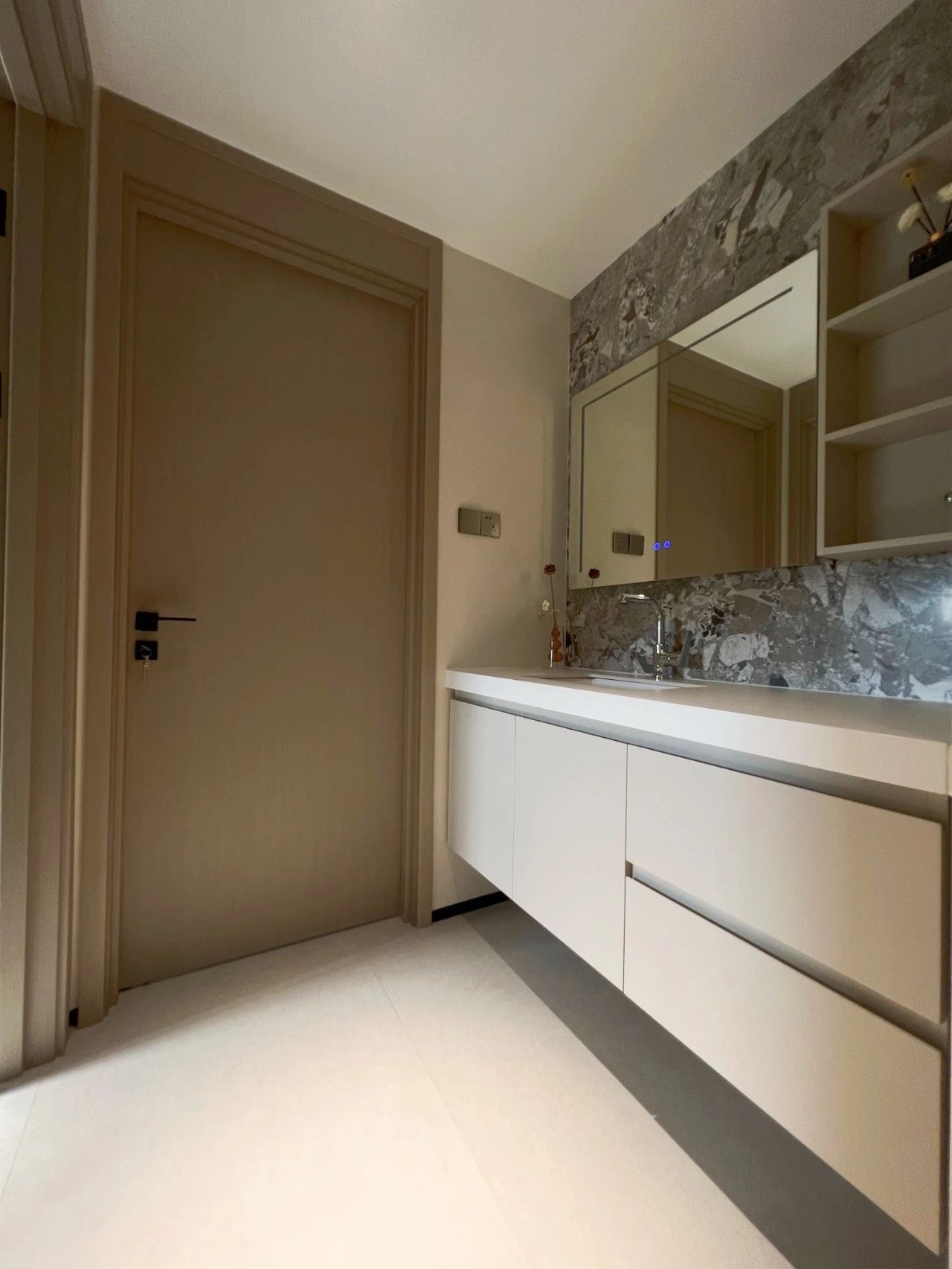 卫生间是卸下一身防备与浮躁的重要空间,保留最纯粹的功能,素色色调带来舒适安稳的环境氛围。