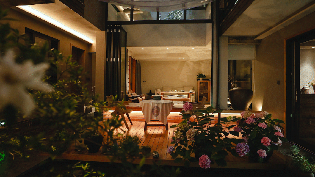 不时微风拂过绿意,将小院生机吹进眼底,“无印良木”原生态肌理带来自然的舒适感,与外间无缝衔接。疲倦瞬间消失,取而代之的是感油然而生的自然舒适。