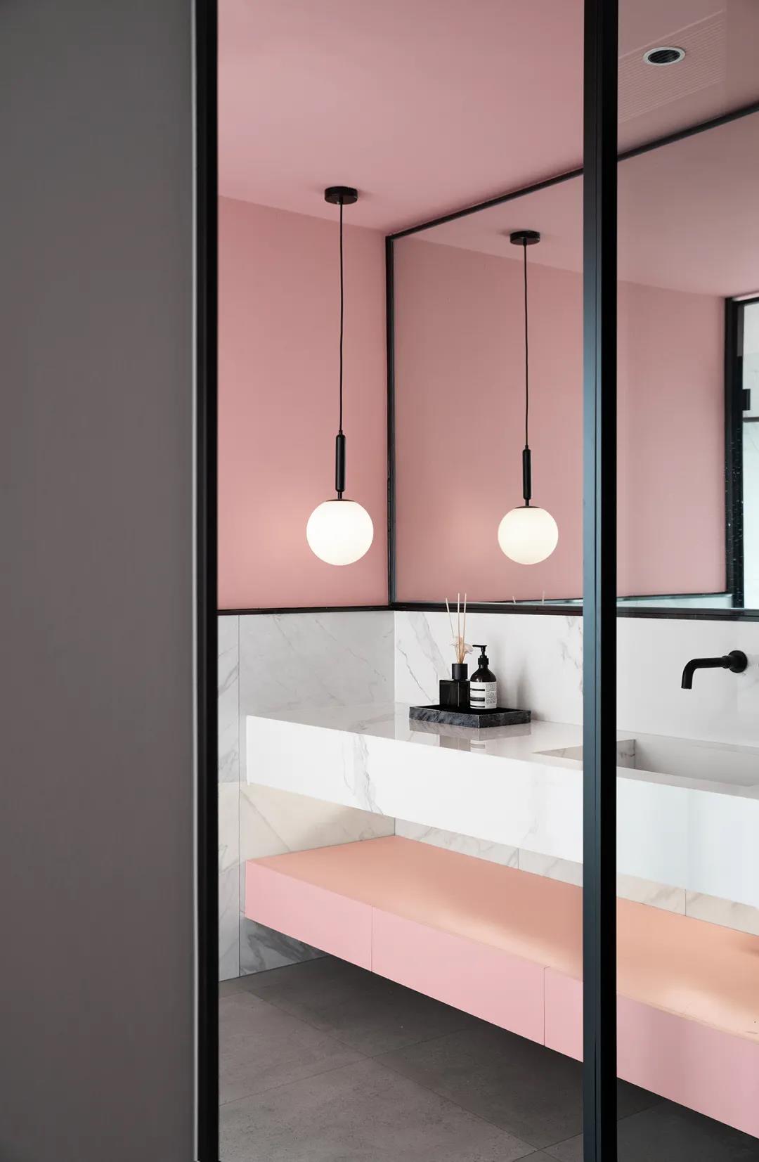 主卫运用了饱和度更低的粉色,与“卡拉拉”系列的白色相互包容,能自成一派,又分外和谐,风格柔和、内敛。