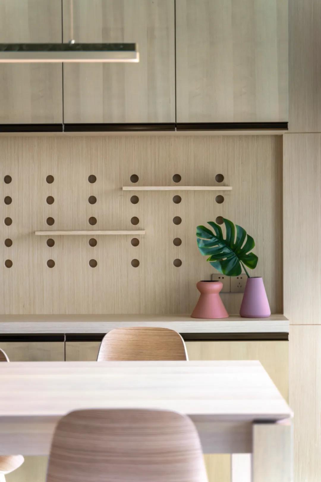 简单的瓷砖与原木、白色与木色、冷与暖,相互去融合,保持空间的低碳和呼吸,家的舒适尽在其中。