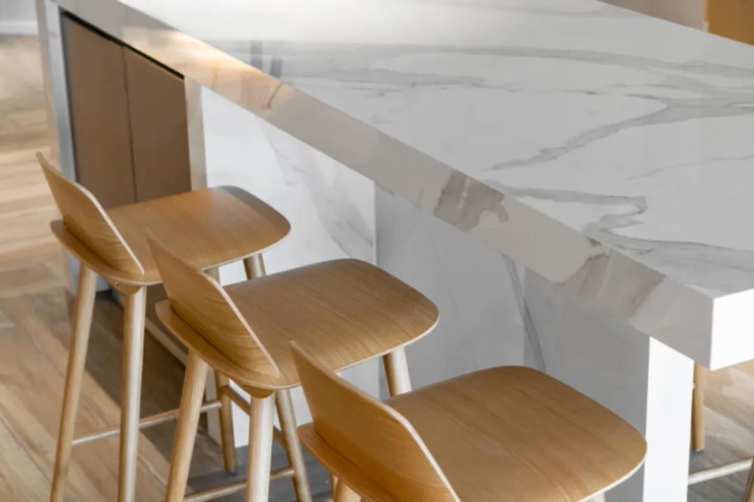 “朱丽叶”系列主要应用在客厅、厨房,干净透亮,加上清浅灰调,为家居增加高雅柔美感。“北美橡木”系列与之搭配,素净简约,符合当下消费者追求清爽自然。