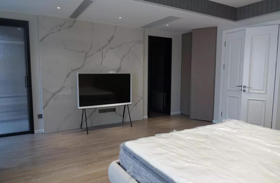 白色石材纹理与地面木纹丝滑相融,宁静与悠然在空间中自由流淌。