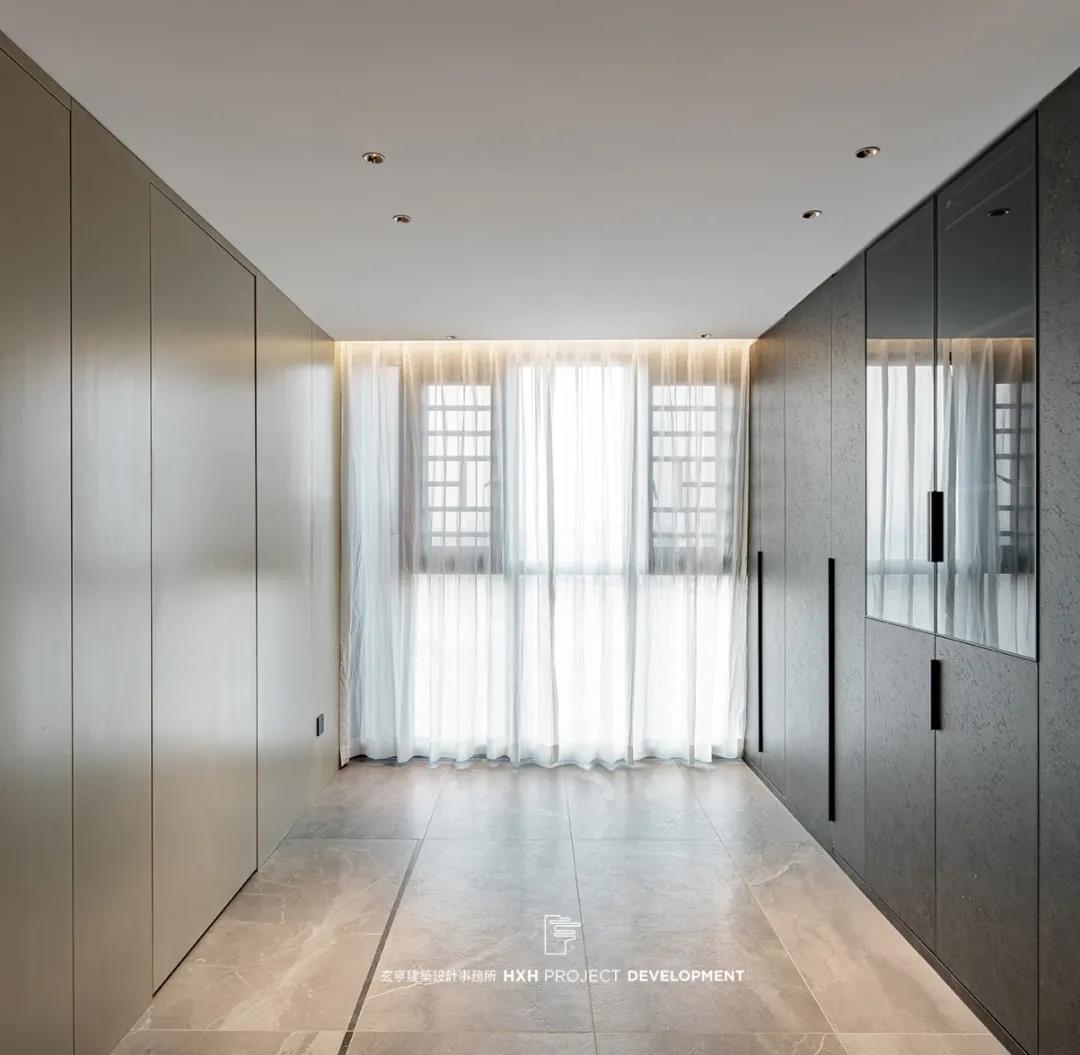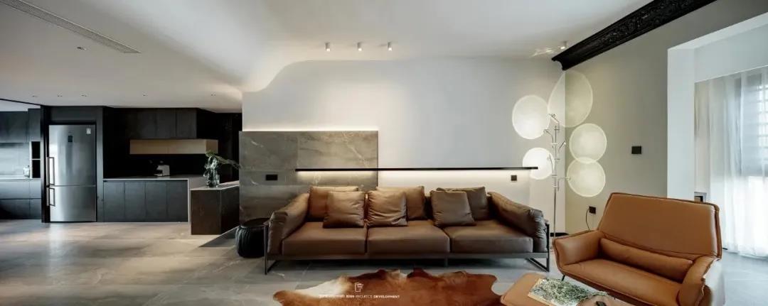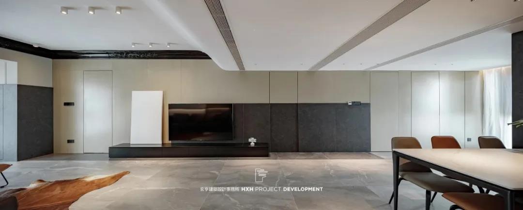 本案设计中运用了不同的材质做了的融合,运用差异性划分出区域的功能性,全屋隐形门,用不同高低、不同厚度的体块互相叠加,形成立体层次。
