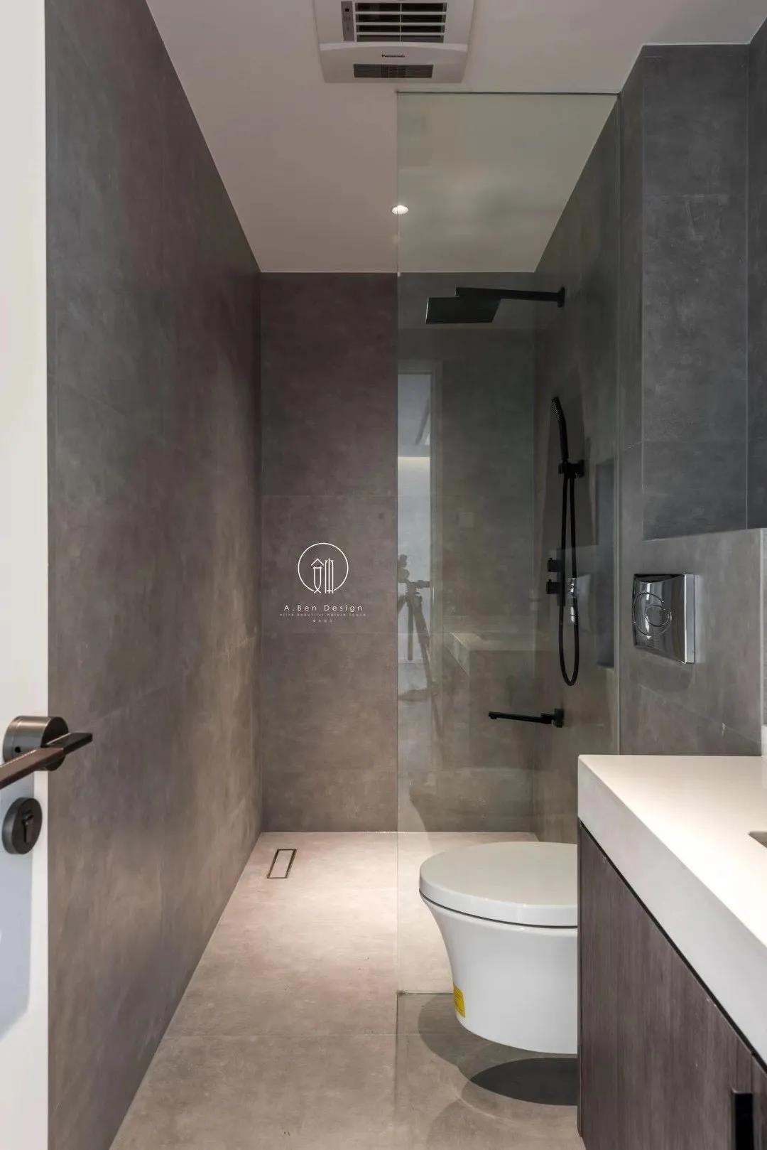 瓷砖材质上主要选用了“欧文莱·灰印象”系列,其精细质感纤毫毕现,运用在空间中,是一种很有深度的美态,远看色调纯净,近看细节无穷。