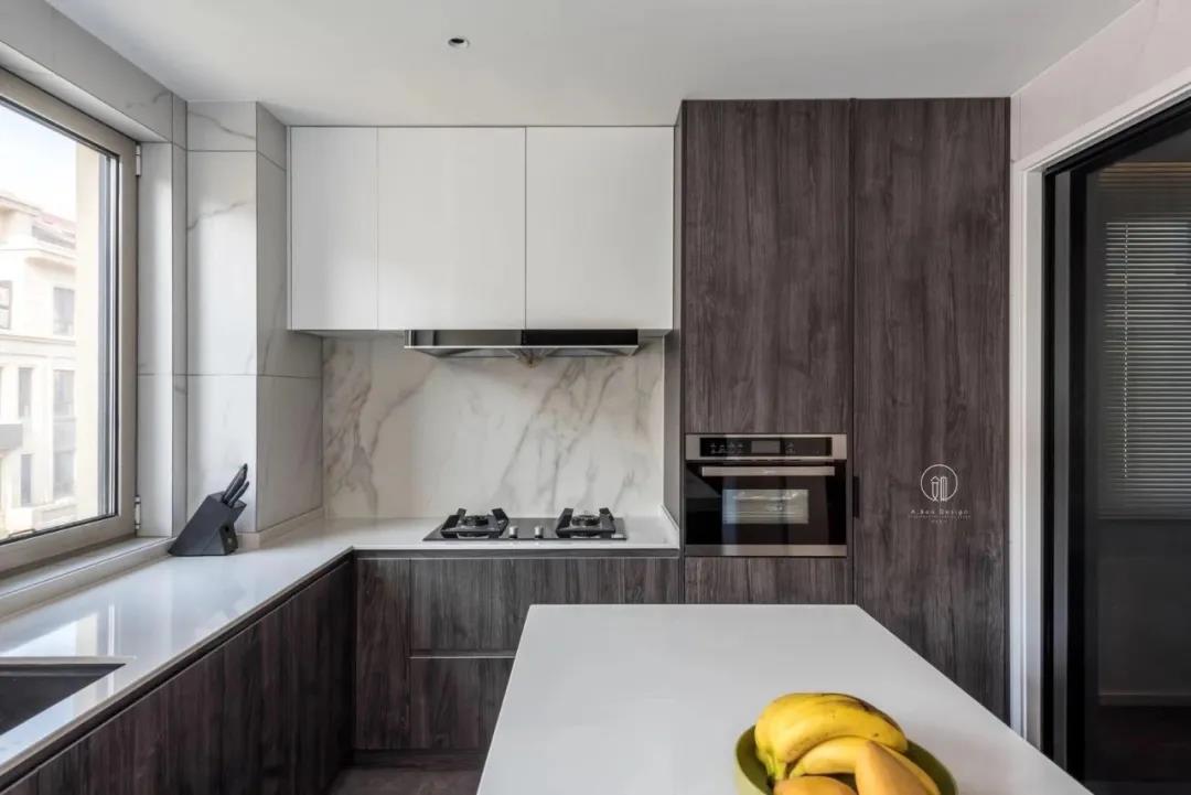 厨房空间白+木色,减轻了视觉的重量感,将自然光引入室内,让下厨成为一种生活的享受,成为良好生活的一部分。