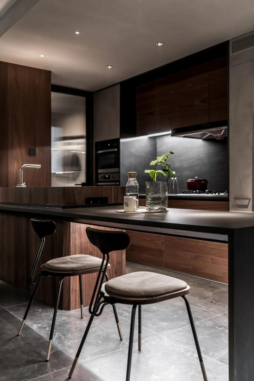 在材质选择上,地面“量子灰”系列的应用让整个空间弥漫着时尚又沉稳的气息,与其他设计恰到好处地衬托出家的高级感,营造出一个精致耐品的品质空间。