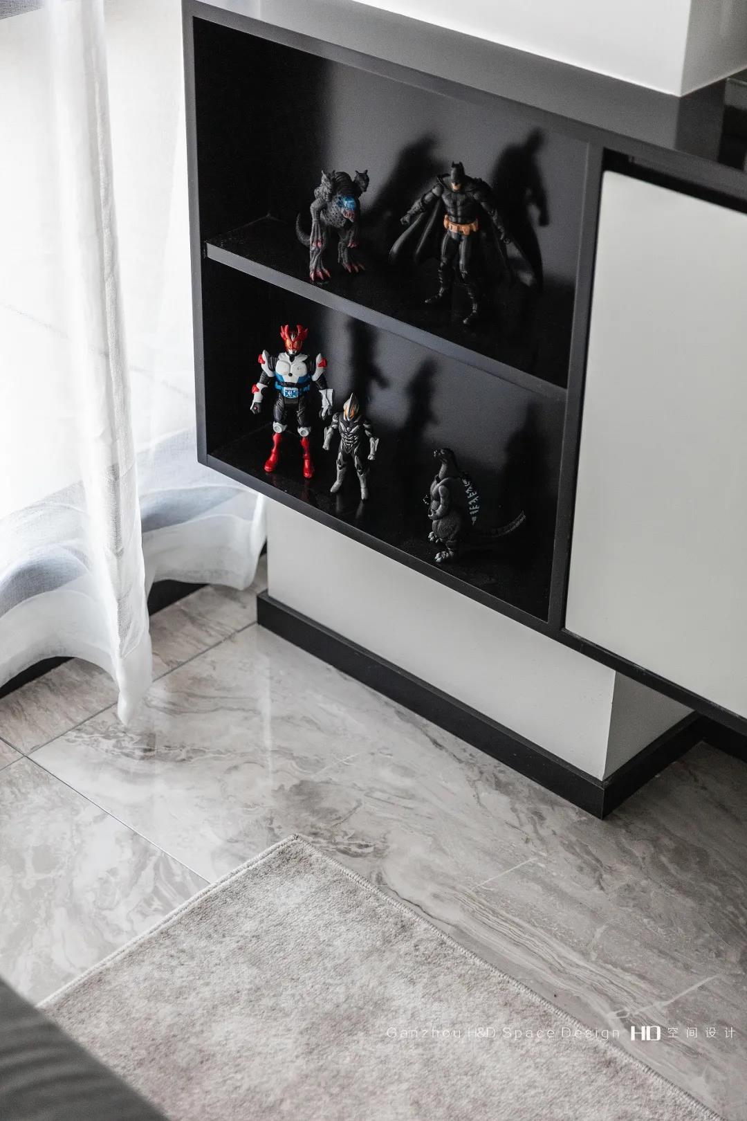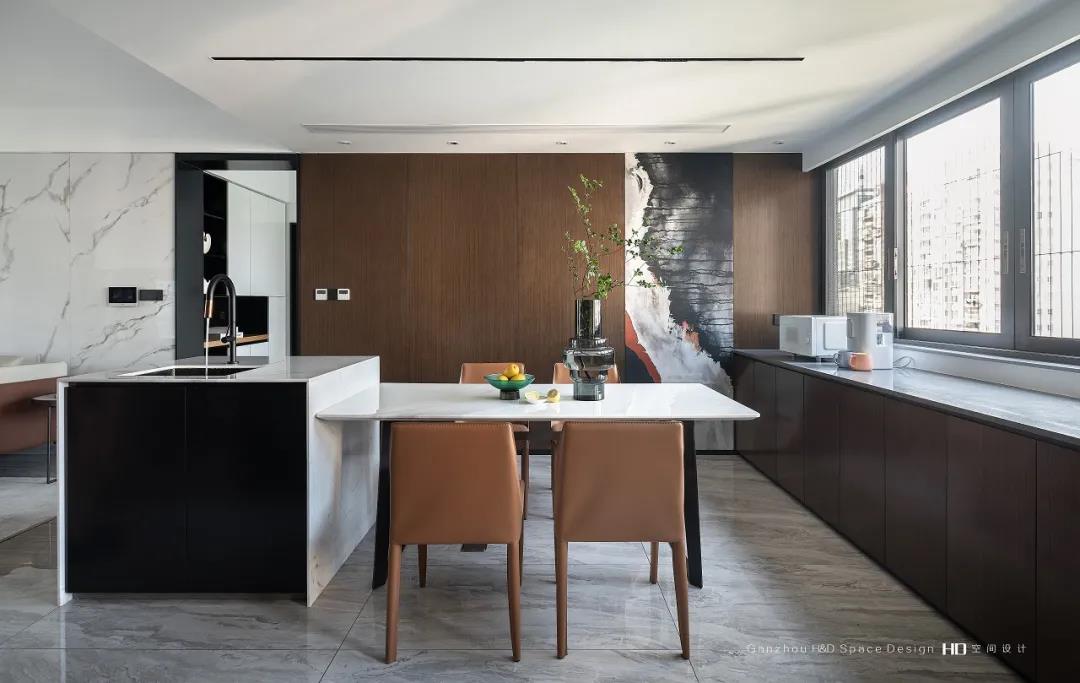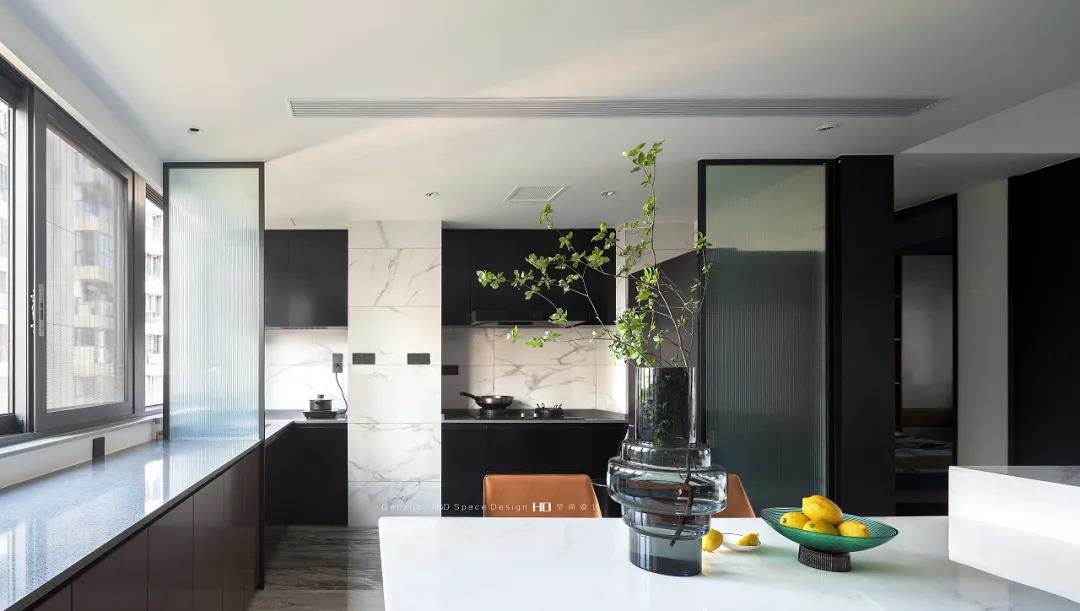 厨房空间映入眼帘,黑白配的视觉感受大大减少烟火带来的油腻感。