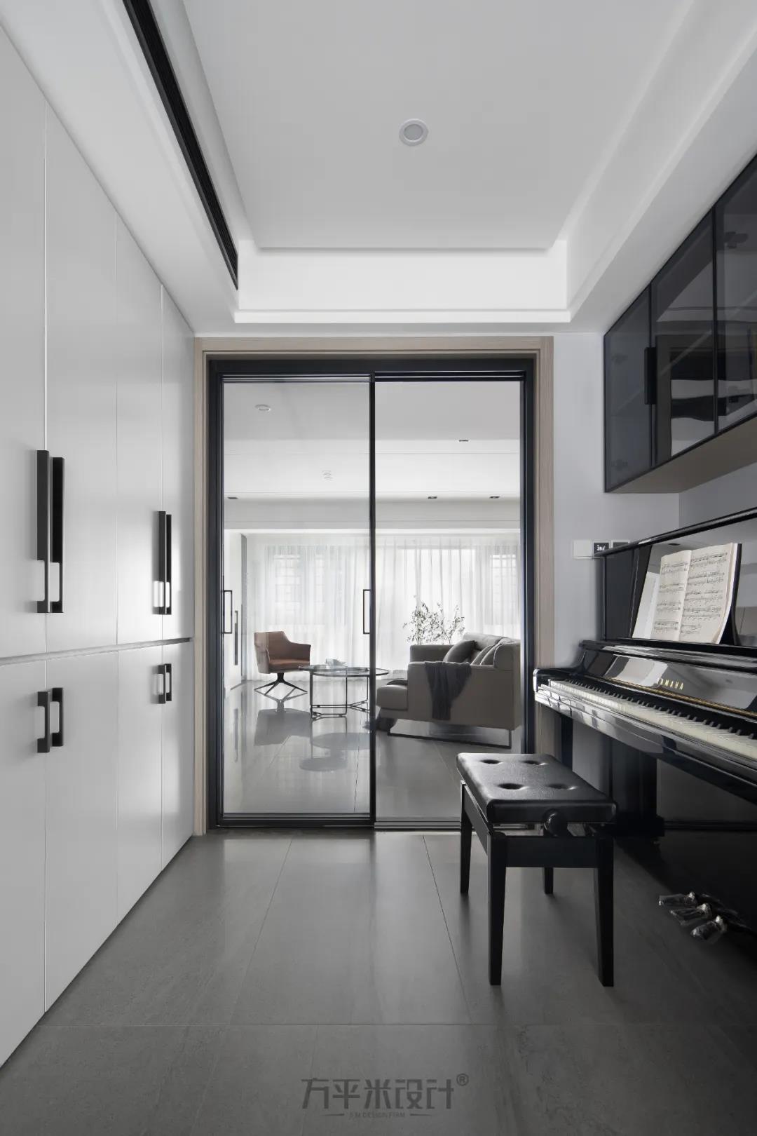 从公共区域进入卧室区域,运用黑色门套起到划分空间的作用。(为了保持视觉的统一性,屋主特意更换了黑色的入户门相匹配)