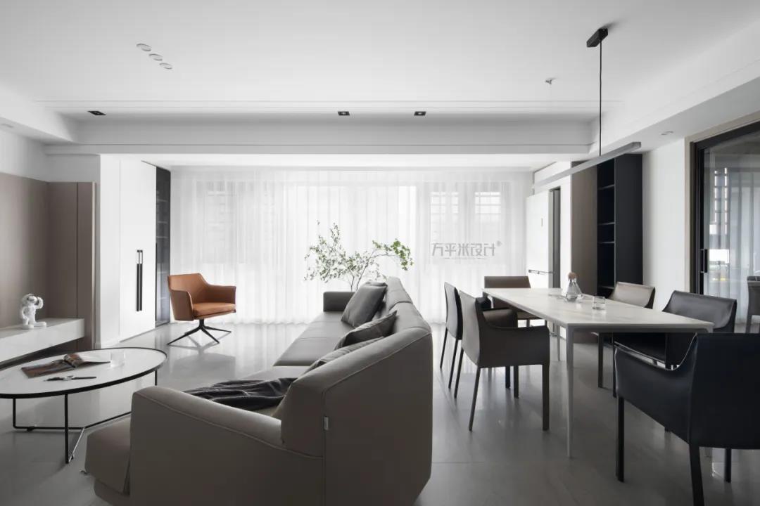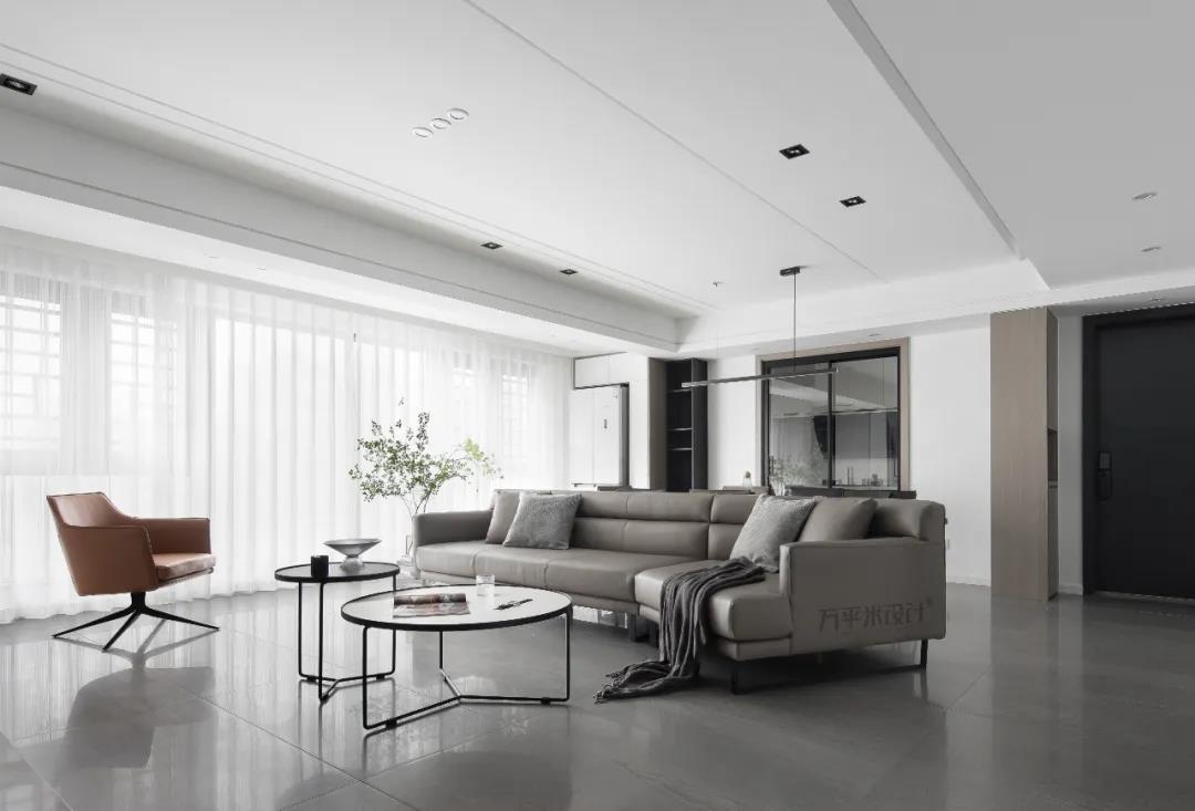 客厅整体以极简的硬装基础,在高级灰的空间氛围下,呈现一个充满简单优雅的气质空间,给人以惬意自然的氛围感。